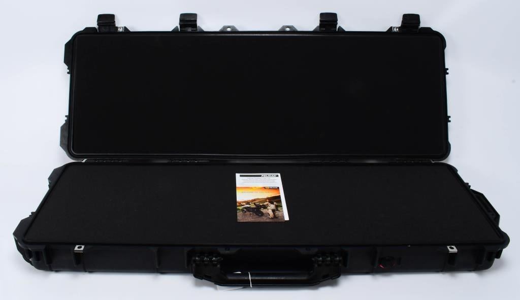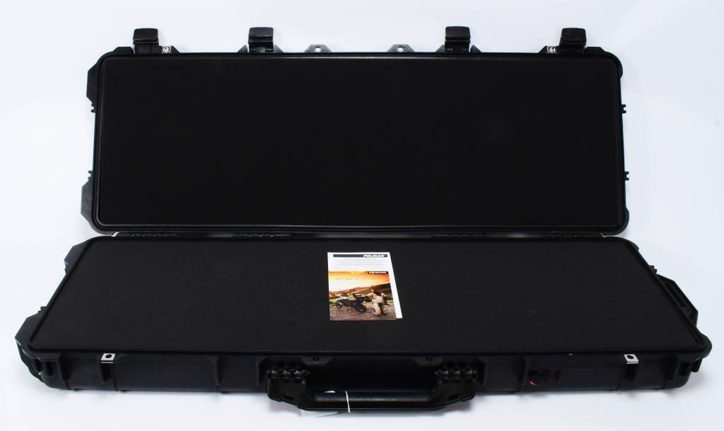 Hello, firearm enthusiasts! Elevate your long gun protection with the Elite Guard: Pelican 1720 Protective Long Gun Hardcase. With interior dimensions of 41.80 x 13.58 x 5.33 inches and exterior dimensions of 44.48 x 16.07 x 6.25 inches, this case ensures your long guns travel securely. Embark on this bidding adventure for Elite Guard: Pelican 1720 Protective Long Gun Hardcase. Bid with confidence and secure this case that promises to keep your long guns safe and sound. Place your bids now and upgrade your long gun protection with this top-tier Pelican case! Sensitive equipment needs protection, and since 1976 the answer has been the Pelican? Protector Case. These cases are designed rugged, and travel the harshest environments on earth. Against the extreme cold of the arctic or the heat of battle, Pelican cases have survived. Made in the USA, these tough cases are designed with an automatic purge valve, that equalizes air pressure, a watertight silicone O-ring lid, over-molded rubber handles and stainless steel hardware. 3-piece foam set Strong polyurethane wheels with stainless steel bearings Watertight, crushproof, and dustproof Open cell core with solid wall design - strong, light weight Fold-down side handles on both ends additional carrying options New fold-down over-molded top and side handles Easy open double-throw latches Stainless steel hardware and padlock protectors Automatic pressure equalization valve - balances interior pressure, keeps water out O-ring seal