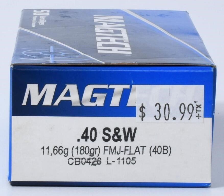 200 Rounds of Magtech .40 S&W Ammunition Secure 200 rounds of Magtech .40 S&W ammunition, a globally recognized industry standard trusted by marksmen of all expertise levels. Magtech ammunition is distributed in Manufacturer: MAGTECH AMMO Caliber: 40 S&W AMMO Bullet Type: Full Metal Jacket Muzzle Velocity: 990 fps Muzzle Energy: 390 ft. lbs Primer: Boxer Casing: Brass Casing Ammo Rating: Target & Practice 40 S&W Ammo Magtech's Full Metal Jacket rounds are designed for target and practice shooting, offering consistent performance and accuracy. Bid confidently on this opportunity to acquire 200 rounds of Magtech .40 S&W ammunition, enhancing your shooting experience with high-quality, reliable rounds. Note: Please ensure compliance with local and state regulations regarding the purchase and possession of ammunition.