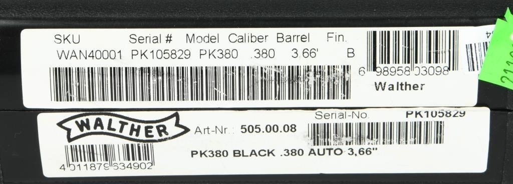 Lot 1470 Walther PK380 Semi Auto Handgun .380 ACP