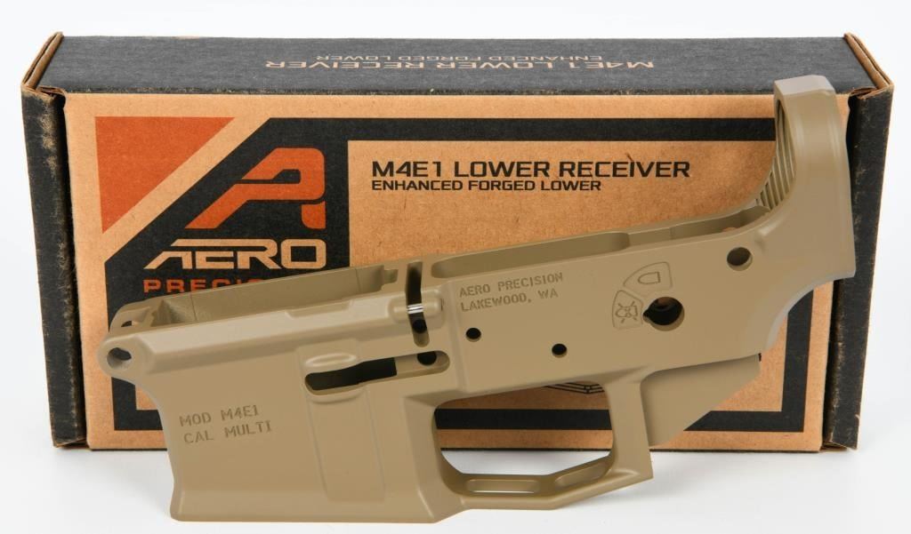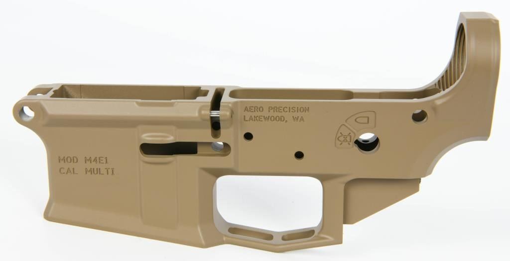 Up Next We Have a Brand New Aero Precision AR-15 M4E1 Stripped Lower Receiver FDE, and Comes in The Factory Box. Aero Precision is a state of the art manufacturer of AR Parts and Accessories Aero Precision is a state of the art manufacturer which crafts superior parts, uppers, and complete rifles. Every component is engineered to razor thin tolerances within Mil-spec standards and is manufactured with the most advanced technologies available. Aero Precision pushes the boundaries of manufacturing with perfect engineering and clean machining by developing and evolving existing processes. When you need perfection and there is no margin of error, you need Aero Precision! Aero Precision M4E1 AR-15 Lower Receiver (Flat Dark Earth) Specifications and Features: Aero Precision APAR600002C Stripped Lower Receiver Multi-Caliber Marked M4 Serial Number Designation Works with Standard AR-15 Components/Magazines Rear takedown pin detent hole is threaded for a 4-40 set screw Integrated Trigger Guard Upper Tension Screw Overall Weight 8.61oz Billet Aesthetics Machined from 7075-T6 Forged Aluminum Cerakote Finish Made in America Flat Dark Earth Includes: Stripped Lower Receiver Nylon Tipped Tensioning Set Screw Threaded Bolt Catch Pin