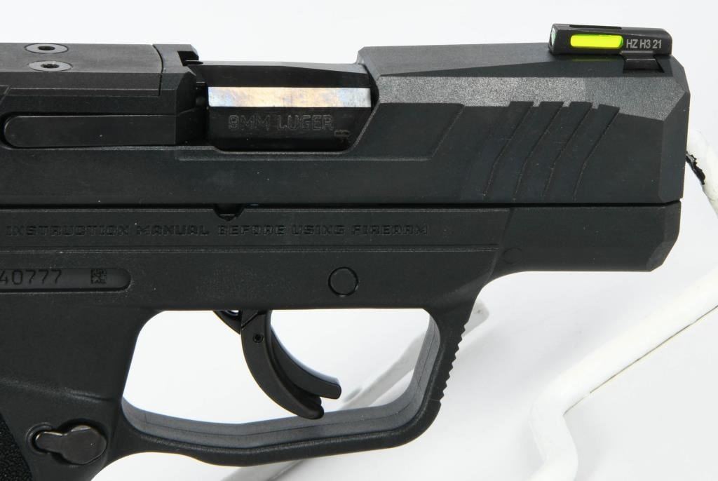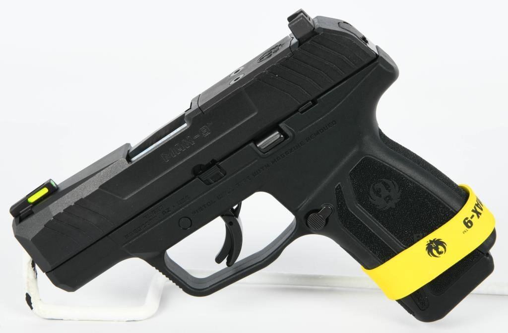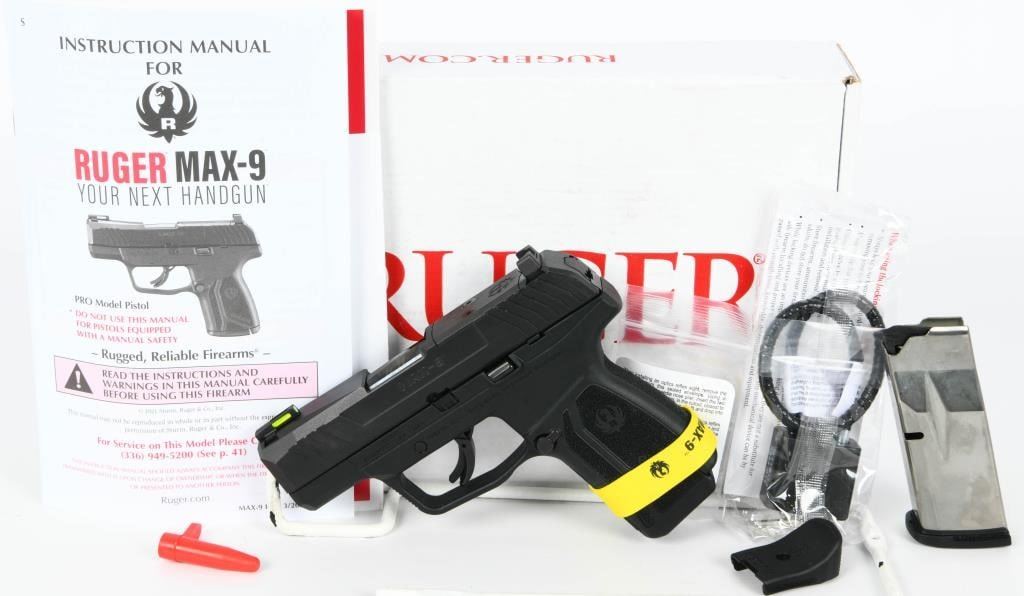 Introducing the Ruger MAX-9 Pro, a revolutionary semi-auto pistol chambered in 9mm, arriving brand new in the factory box with two magazines, a lock, and paperwork. This American-made handgun is a game changer in the micro-compact world, offering industry-leading features at a highly competitive price point, providing a superior option in the popular micro-compact market. The MAX-9 boasts a slim and lightweight design, making it ideal for personal protection, while still offering an impressive capacity of up to 12+1 rounds of 9mm Luger ammunition. Constructed with rugged durability in mind, it features a through-hardened alloy steel slide, a one-piece precision-machined fire control chassis, and a high-performance glass-filled nylon grip frame. Straight out of the box, the MAX-9 is optics ready, allowing for direct mounting of JPoint and Shield patterned micro red dot sights. The pistol co-witnesses with the stock tritium fiber optic day/night front sight and adjustable rear sight, providing flexibility and adaptability for various shooting scenarios. The Ruger MAX-9 Pro is designed to cater to the needs of discerning consumers, offering a versatile and reliable micro-compact option for personal defense. Bid with confidence on this cutting-edge firearm that combines innovation, rugged construction, and optics-ready adaptability. Secure your opportunity to own the Ruger MAX-9 Pro and experience the next level of performance in the micro-compact market.