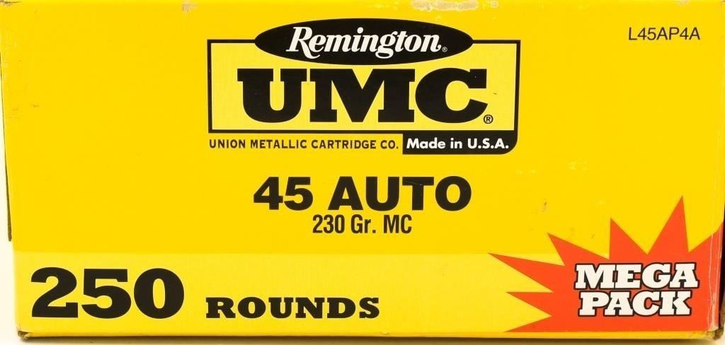 Lot 1510 250 Rounds Remington UMC .45 ACP Ammunition 250