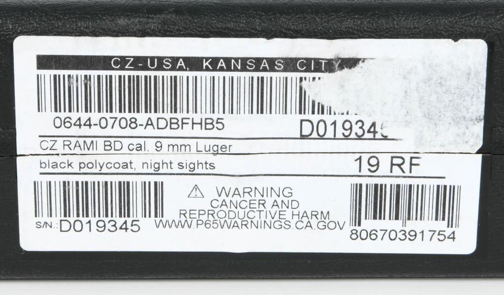 Lot 1524 CZ-USA 2075 RAMI Sub Compact Pistol 9MM