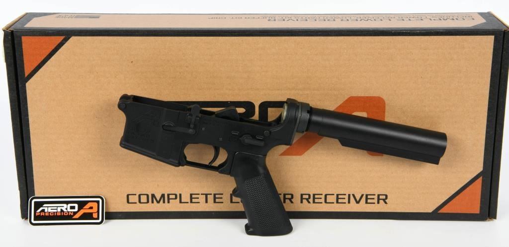 Up Next We Have a Brand New Aero Precision AR-15 Gen 2 Complete Lower Receiver A2 Grip Black, and it COmes in The Factory Box. Start Your Rifle Build with the High-Quality Aero Precision AR-15 Complete Lower Receiver The Aero Precision AR-15 Gen 2 Complete Lower Receiver helps you begin an AR-15 build project from the ground up using a top-quality component. This Mil-Spec lower includes a carbine buffer tube, buffer and spring, and because it does not include a stock you can choose exactly which stock you'd like and add it yourself. The lower is Aero's multi-caliber marked AR-15 Gen 2 receiver and makes the perfect foundation for 5.56 NATO, .223 Remington, .300 AAC Blackout and more. Don't skimp out on one of the most important components of your AR-15, choose quality, choose Aero Precision. Aero Precision AR-15 Complete Lower Receiver Specifications and Features: Aero Precision Item Number: APAR600112 Aero AR-15 Gen 2 Complete Lower Receiver Multi Caliber (compatible with 5.56, .223, .300 BLK and more) Accepts Standard Pattern AR-15 Magazines Mil-Spec Trigger Guard AR-15 Carbine Receiver Extension AR-15 Carbine Buffer and Spring Standard Lower Parts Kit A2 Pistol Grip Weight: 25.65 oz. Made in the USA Anodized Black Finish