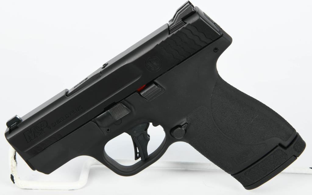 Introducing the Smith & Wesson M&P 9 Shield Plus, a semi-auto pistol chambered in 9mm Luger with a 3.1" barrel. This firearm comes with two 13-round magazines in black, presenting a trusted micro-compact option for concealed carry. The M&P Shield Plus enhances the renowned M&P Shield series with a 13+1 round capacity, an improved grip angle, and a more balanced grip texture. The package includes both 10 and 13-round magazines while maintaining the same traditional frame size, ensuring compatibility with legacy Shields holsters. The flat-face trigger provides consistent finger placement for accurate and repeatable shooting. Responding to consumer feedback, Smith & Wesson has implemented a more balanced grip texture based on the M2.0 model. This stippling allows users to manage recoil, maintain a firm grip, and carry concealed comfortably without irritating the skin. Bid confidently on the Smith & Wesson M&P 9 Shield Plus, a micro-compact pistol that combines trusted features with modern enhancements, making it an ideal choice for concealed carry and personal defense.