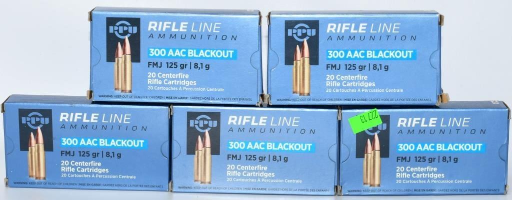 Secure 100 rounds of PPU .300 AAC Blackout ammunition, featuring reliable brass-cased construction and a powerful 125-grain Full Metal Jacket (FMJ) bullet. PPU (Prvi Partizan) is recognized for its quality manufacturing, making this ammunition an excellent choice for various shooting applications. The 125-grain FMJ construction ensures smooth feeding and reliable cycling in your .300 AAC Blackout firearms. Whether you're at the range for practice or engaging in training sessions, PPU ammo delivers consistent accuracy and performance. Bid confidently on this opportunity to acquire 100 rounds of PPU .300 AAC Blackout ammunition, enhancing your shooting experience with high-quality, brass-cased, full metal jacket rounds. Note: Please ensure compliance with local and state regulations regarding the purchase and possession of ammunition.