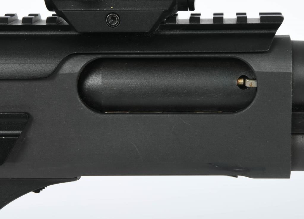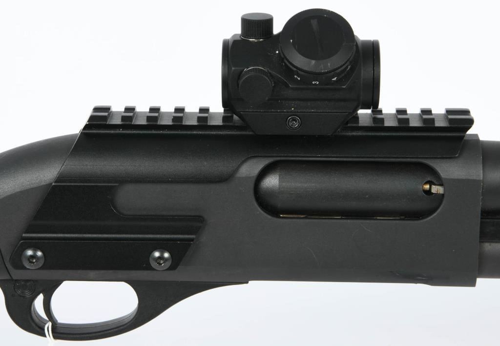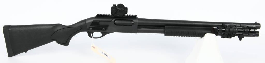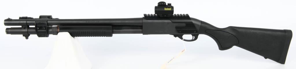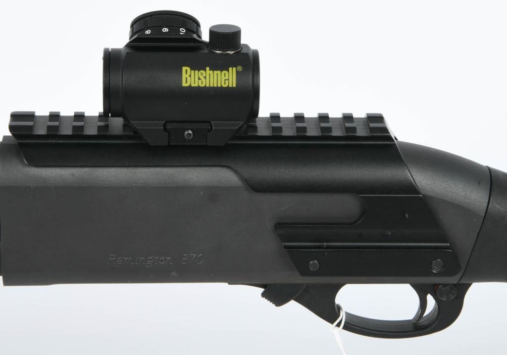 Introducing the Remington 870 Tactical Pump Shotgun ? a formidable 12-gauge powerhouse designed for those who demand reliability and versatility in a tactical firearm. This pump-action shotgun accepts 3" shells, making it suitable for a variety of applications, from home defense to range shooting. Enhanced with an extended magazine tube, the Remington 870 Tactical ensures you have ample rounds at your disposal. The addition of a side barrel mount featuring a powerful flashlight further solidifies its role as a practical and efficient home defense solution. For those seeking improved aiming capabilities, this shotgun comes equipped with an upper rail, ready to accommodate accessories such as optics or sights. In this case, a Bushnell red dot scope is included, providing rapid target acquisition and improved accuracy. The Remington 870 has long been a symbol of reliability and ruggedness, and this tactical variant takes those qualities to the next level. The combination of a robust design, extended magazine capacity, tactical accessories, and a reliable red dot scope makes this shotgun an excellent choice for those who prioritize preparedness and effectiveness. As you consider adding the Remington 870 Tactical Pump Shotgun to your collection, be sure to familiarize yourself with your local firearm laws and regulations. Bid confidently, knowing you're securing a reliable and versatile tactical shotgun. Don't miss out on the opportunity to own this exceptional firearm, and happy bidding!