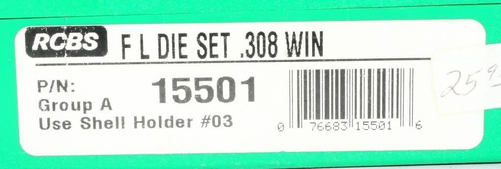 2 RCBS Full Length Reloading Dies For .308 Win, Both Dies Appear in Overall Good Condition RCBS .308 Winchester Full-Length Die Set w/ Sizer & Seater Intended for reloading .308 Winchester bottleneck cases, this RCBS two-die set consists of a full-length Sizer Die with an expander-decapping unit, and a Seater Die with bullet seater plug. The Sizer Die re-shapes cases to SAAMI minimum cartridge dimensions. It sizes the outside of the case, removes the primer and expands the neck to accept the bullet. The die has vents to prevent case damage caused by trapped air and to release excessive lubricant. Headspace is held to minimum tolerances to avoid changing the case body length during full-length sizing. The included Seater Die has a built-in roll crimper to secure the bullet as it is fit into position. Both dies have large, easy-to-adjust hex-lock rings. Each set is constructed from case-hardened steel, precision-drilled, reamed, polished and hand-inspected twice before leaving the factory. Also included with the set are a plastic storage box and loading data table. Engineered to the highest standards and manufactured to the tightest tolerances, RCBS dies can be counted on to produce consistent and reliable results for shooters who demand reloads equal to the quality of their firearm.