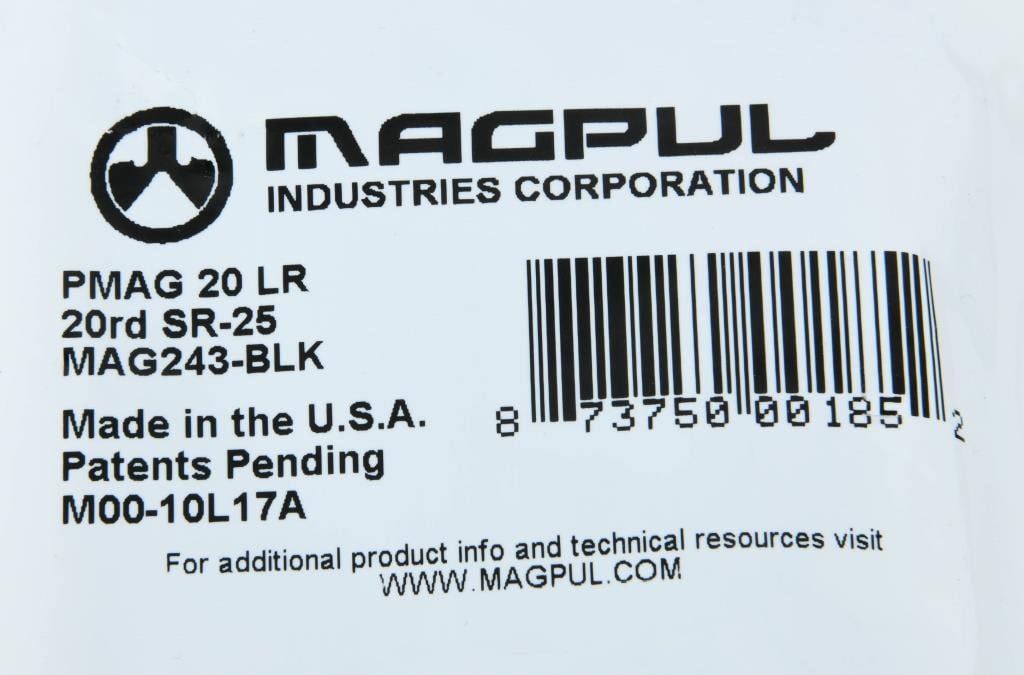 3 New In Package Magpul PMAG 20LR Magazines LR-308, KAC SASS/MK11 308 Winchester 20-Round Polymer Black The MagPul 20LR PMag is constructed from advanced polymers with superior impact resistance and light weight. This 20-Round magazine is designed to replace the standard SR25/ M110 pattern magazines. The 20LR is less than half the weight of a standard steel mag and has a true 20-round capacity. The body is designed with a constant-curve inside dimension and a self-lubricating follower for reliable feeding. The textured magazine body and flared floorplate improve handling over standard magazines. The snap-on impact cover protects the feed lips from impacts and debris while in storage. The impact cover also allows loaded magazines to be stored long-term (over 1 year) without compromising the integrity of the feed lips. The design of the floor plate is simple to disassemble using the impact cover or simple punch for cleaning and maintenance. Technical Information: 20-Round Capacity Available in Black Anti-Tilt Follower and Stainless Steel Spring Will accept rounds with a maximum overall length of 2.820" Impact cover to protect feed lips Accepts standard MagPul Magazine Pull for AR10/ LR-308 Know & Comply With Your Local, State & Federal Laws Before Bidding