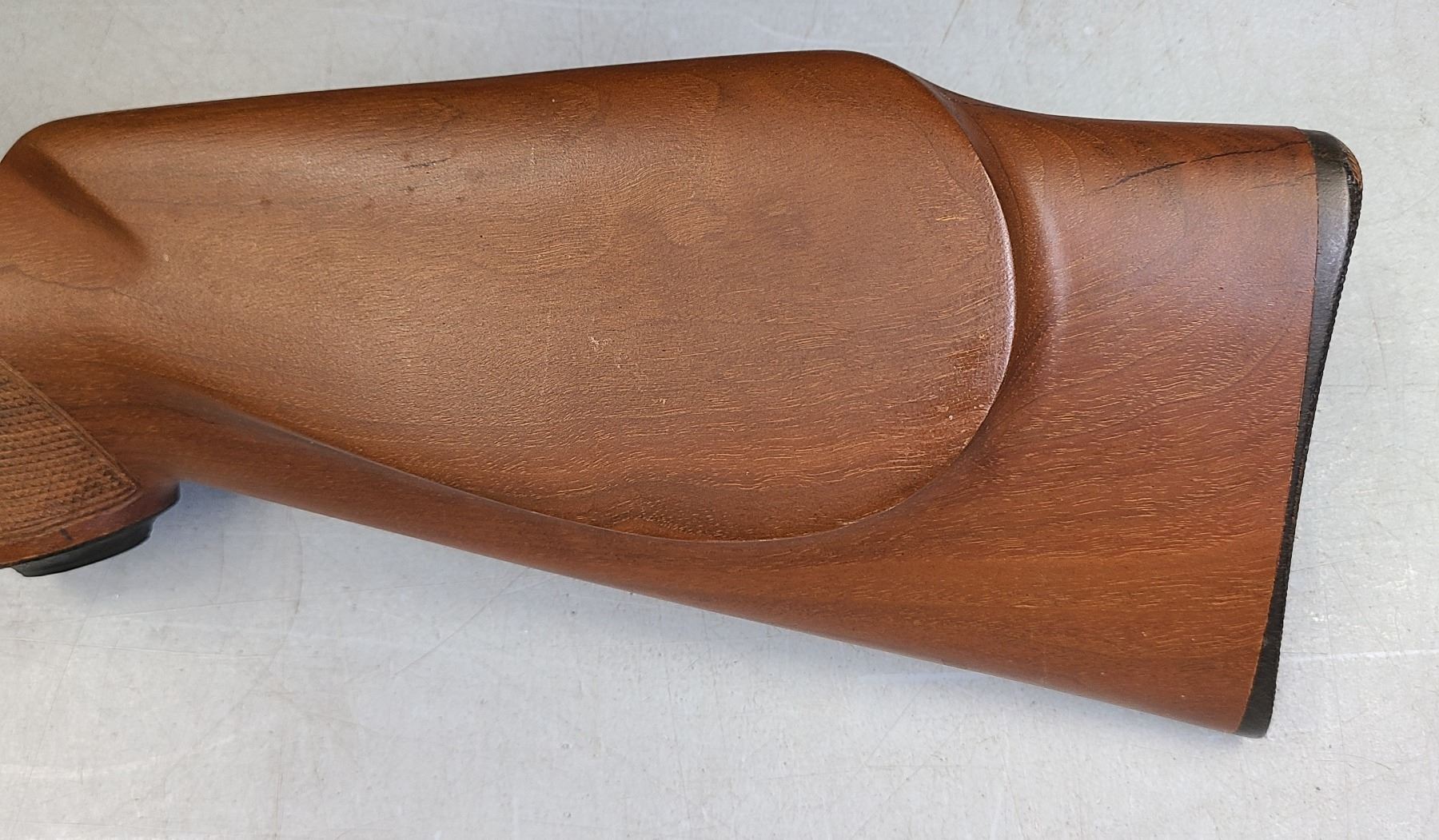 Stock is real nice design with some nice deep checkering and has a Bishop Butt Plate.
