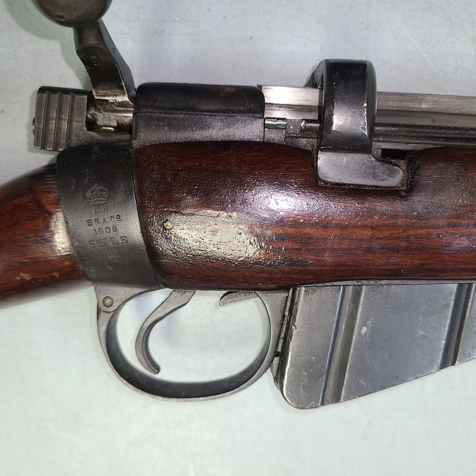 and has 1908 stamped on Stock band - Also has BSA SMLE 111 plus Crown with ER under