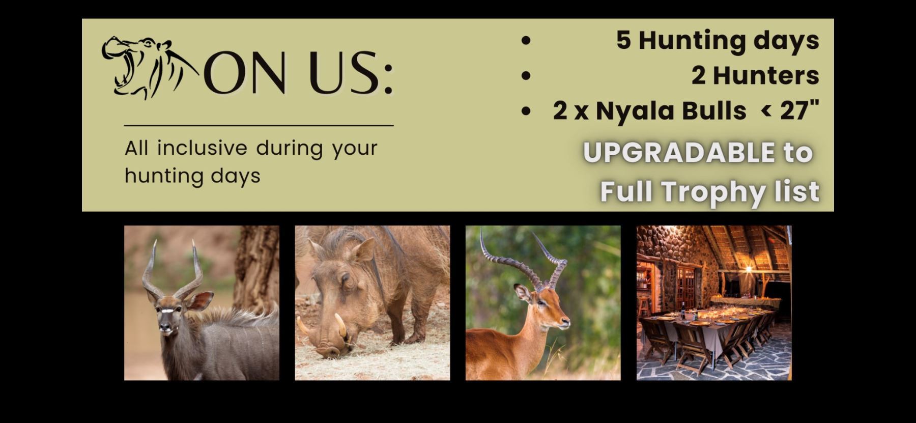 Hunt: Five-day hunt for 2 hunters includes two (2) Nyala bull