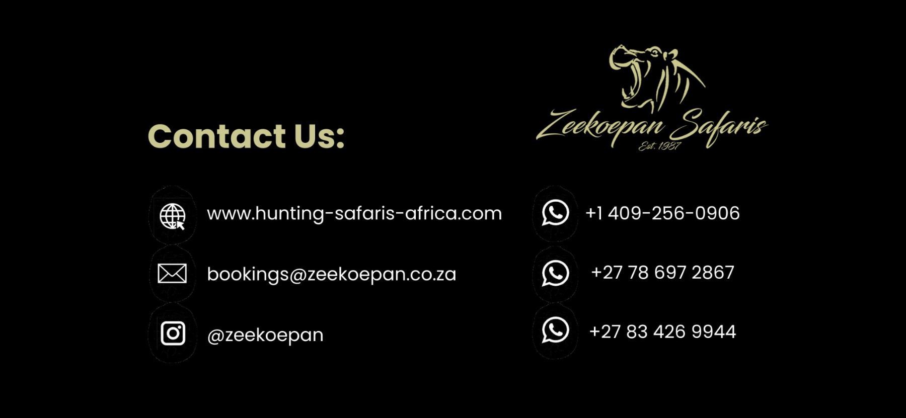 •Taxidermy discount by Zululand Taxidermy is offered to all mounts done by them after the hunt with Zeekoepan Safaris.