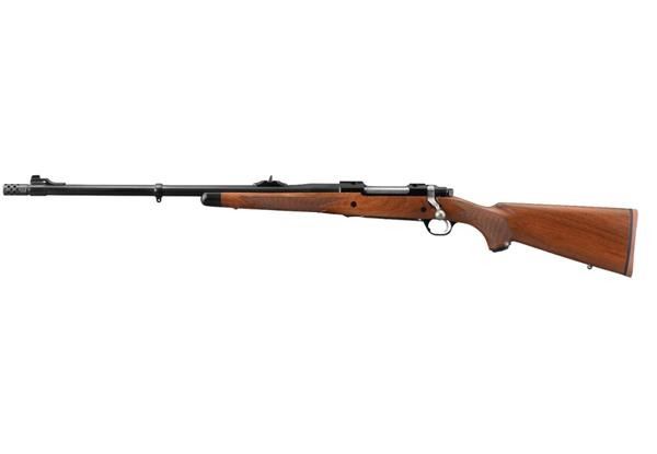 The 23" barrel is cold hammer forged and features a Ruger muzzle break as well as mounted "express style" adjustable V sights and a white front bead to help with target acquisition. However, should the shooter choose the comes complete with integral scope mounts.