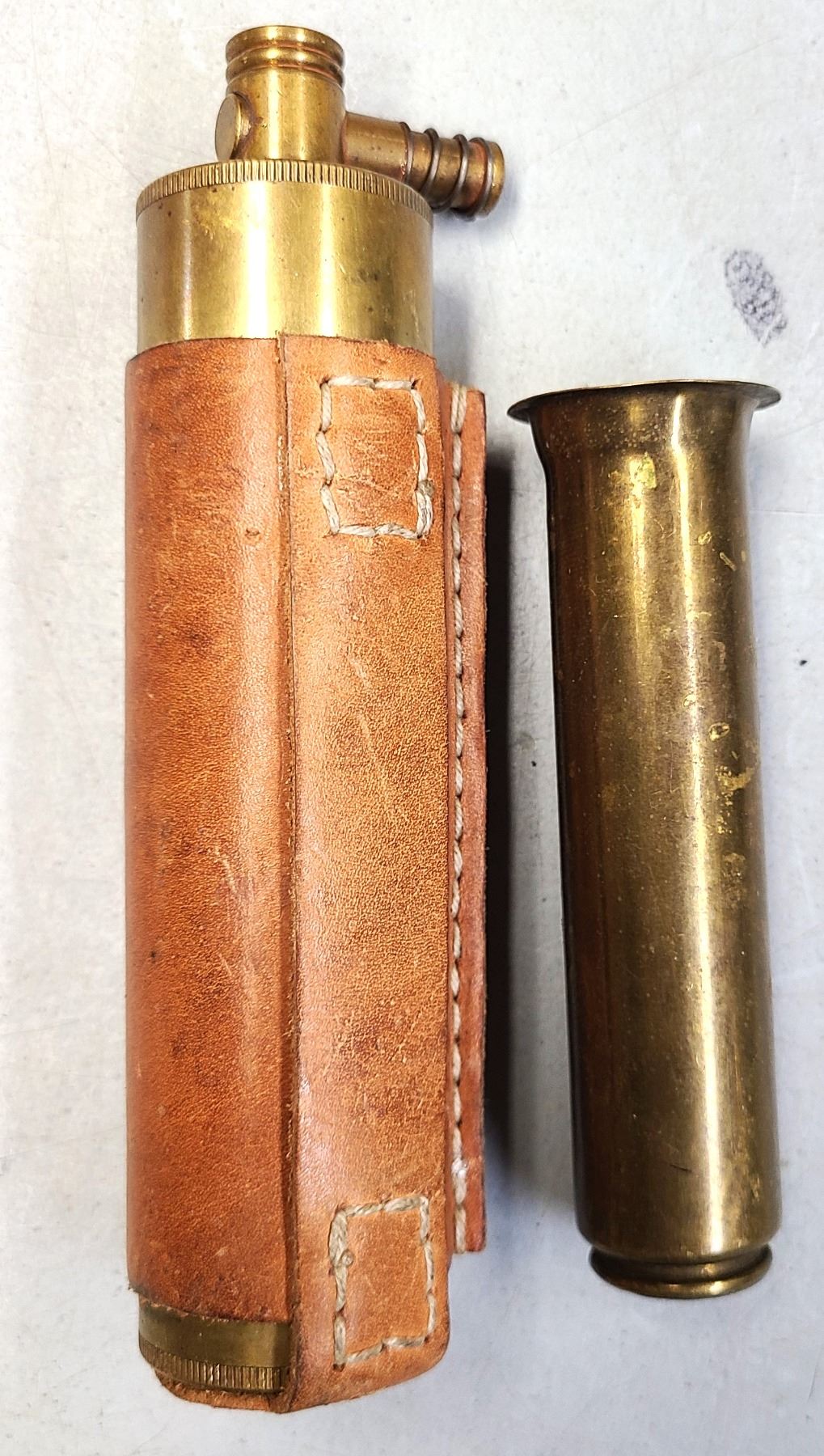Powder Cylinder and Cup - Leather Cover over Brass