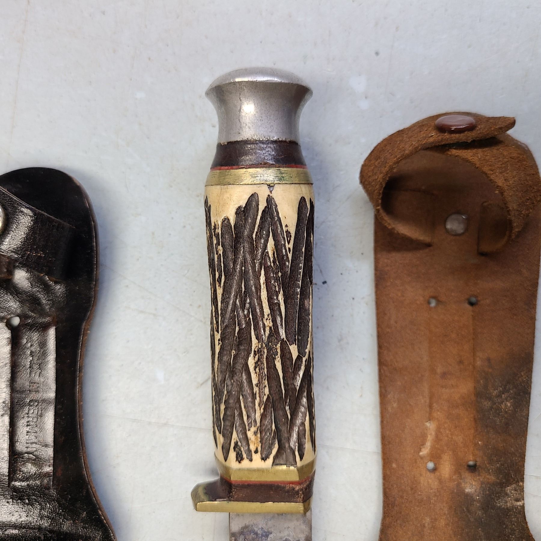 Lot 301 Knife Lot - 3 x Vintage Hunting Sheath Knives - Skinners PLus Camp Knife