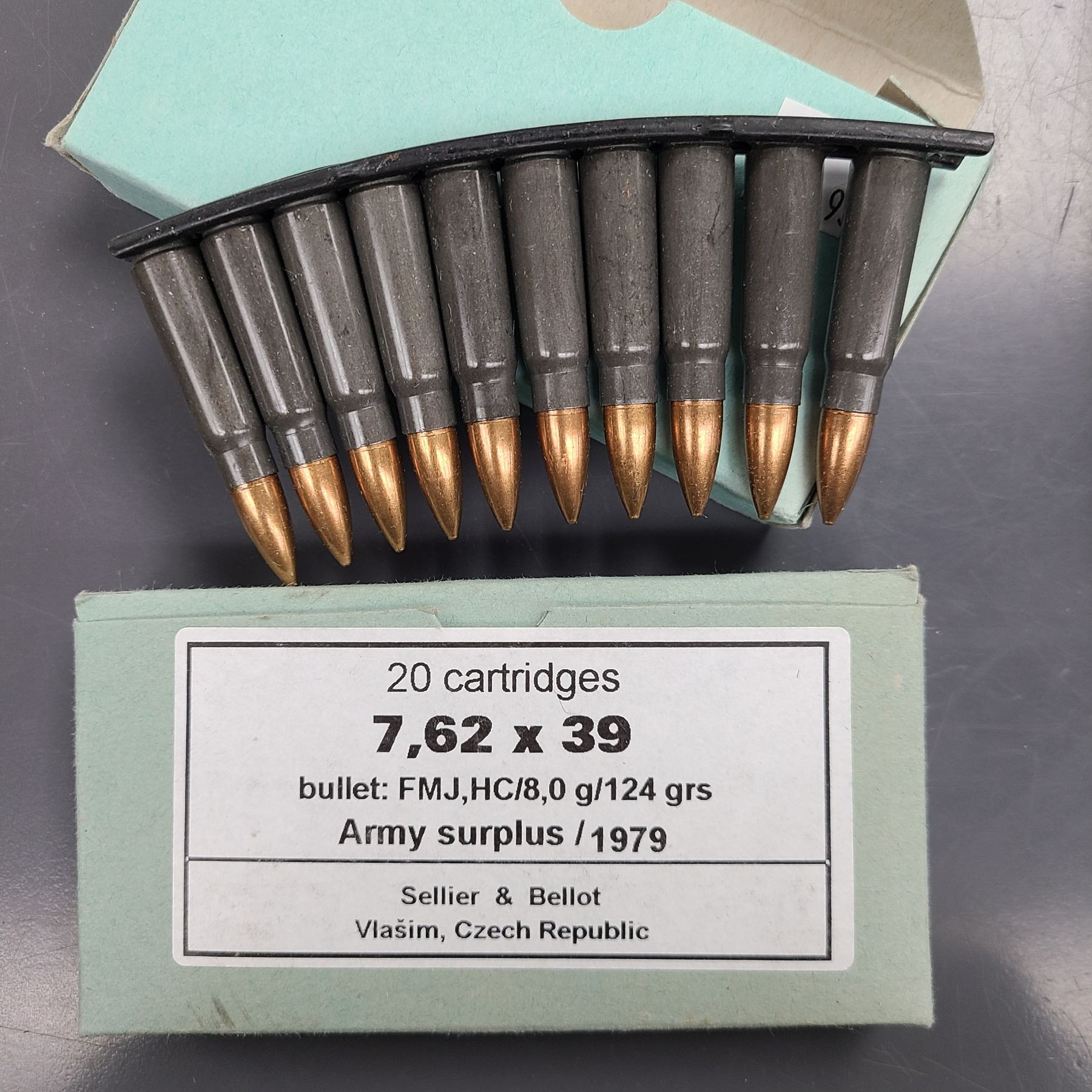Sellier & Bellot 7.62 x 39 SKS Ammo 124 gr on Stripper Clips - 40 rds / 4 Stripper Clips