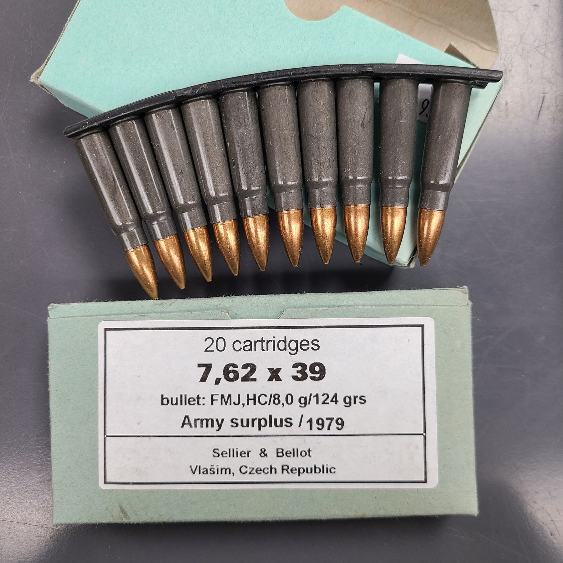 Sellier & Bellot 7.62 x 39 SKS Ammo 124 gr on Stripper Clips - 40 rds / 4 Stripper Clips