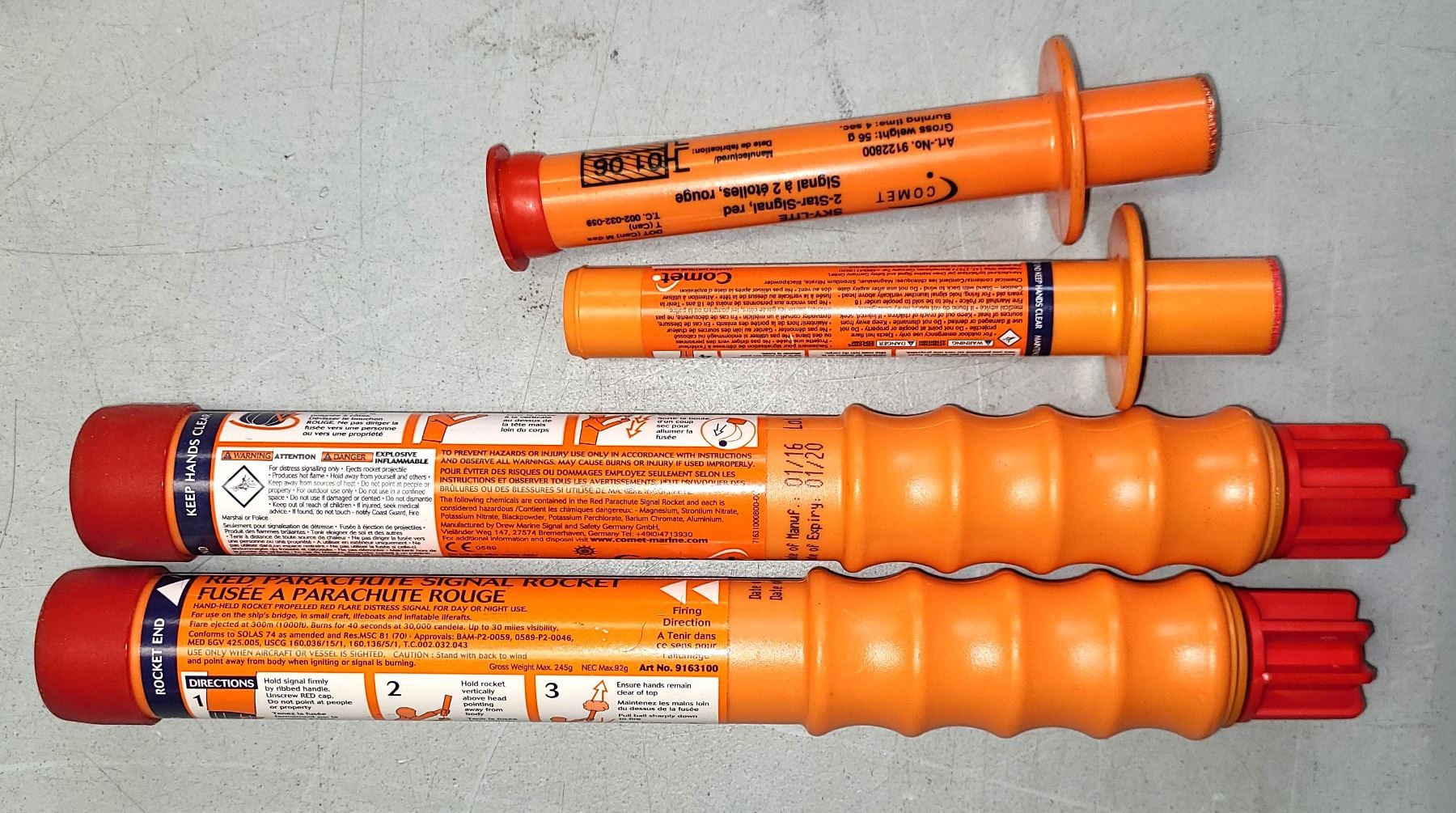 Rocket Flares - 2 x Comet Sky-Lite Signals & 2 x Red Parachute Flares