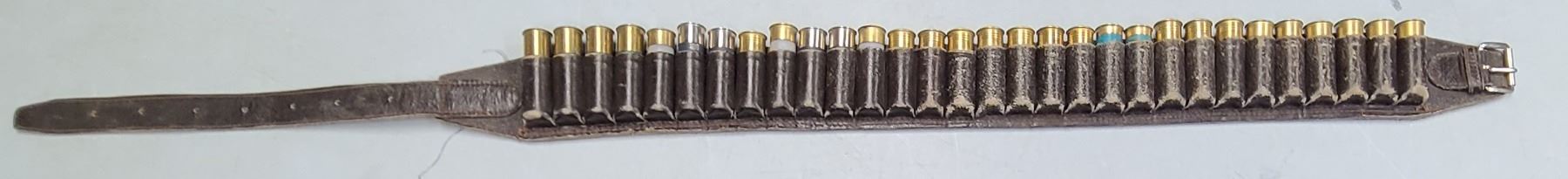 12ga Shotgun Leather Cartridge Belt - Complete with 25 Mixed Rounds