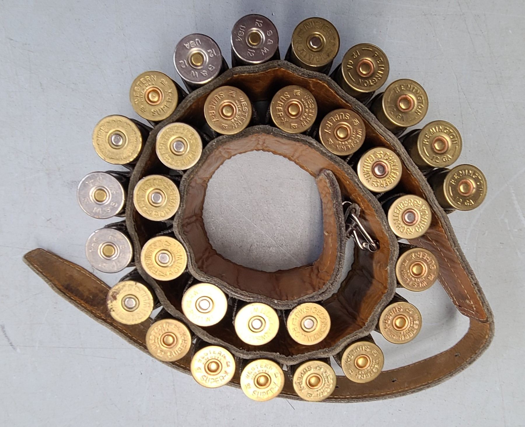 Lot 725 12ga Shotgun Leather Cartridge Belt - Complete with 25 Mixed Rounds