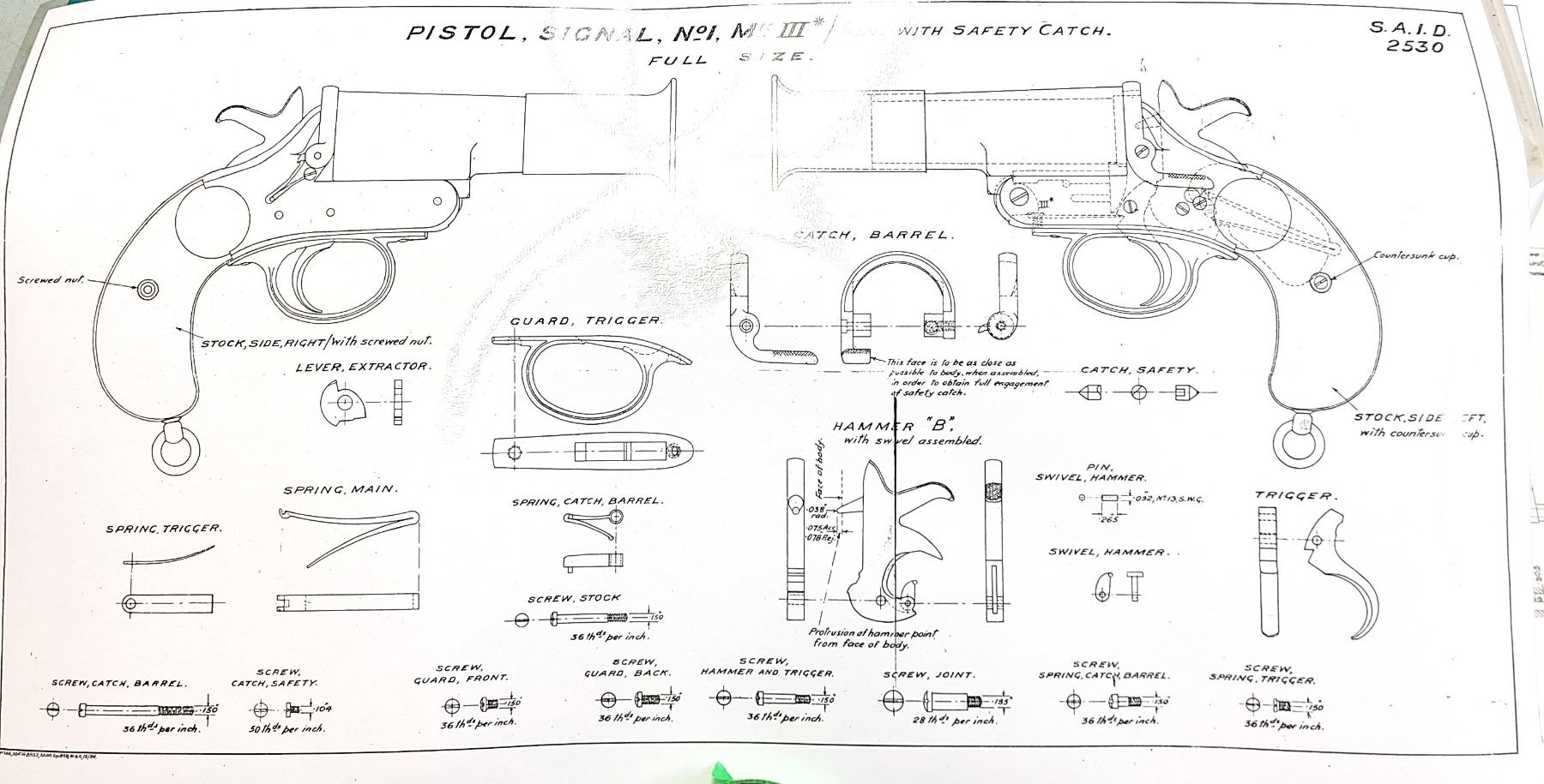 Signal Pistol No1 Mk11 Hand Gun British Blueprint Laminated - 1931 Armourers UK