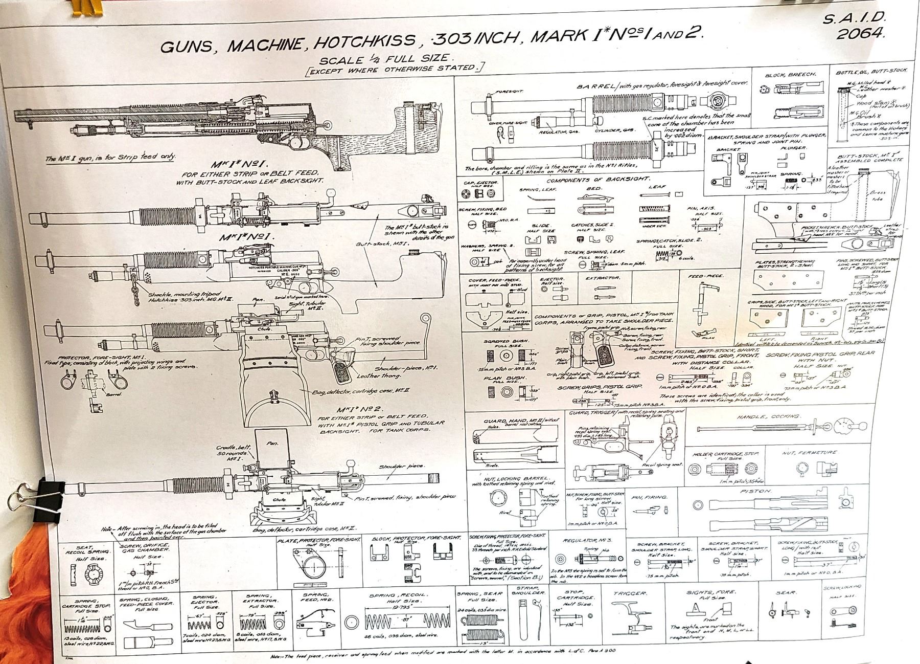 Hotchkiss Mk1 & 2 Machine Gun 303 British Blueprint Laminated - 1931 Armourers UK