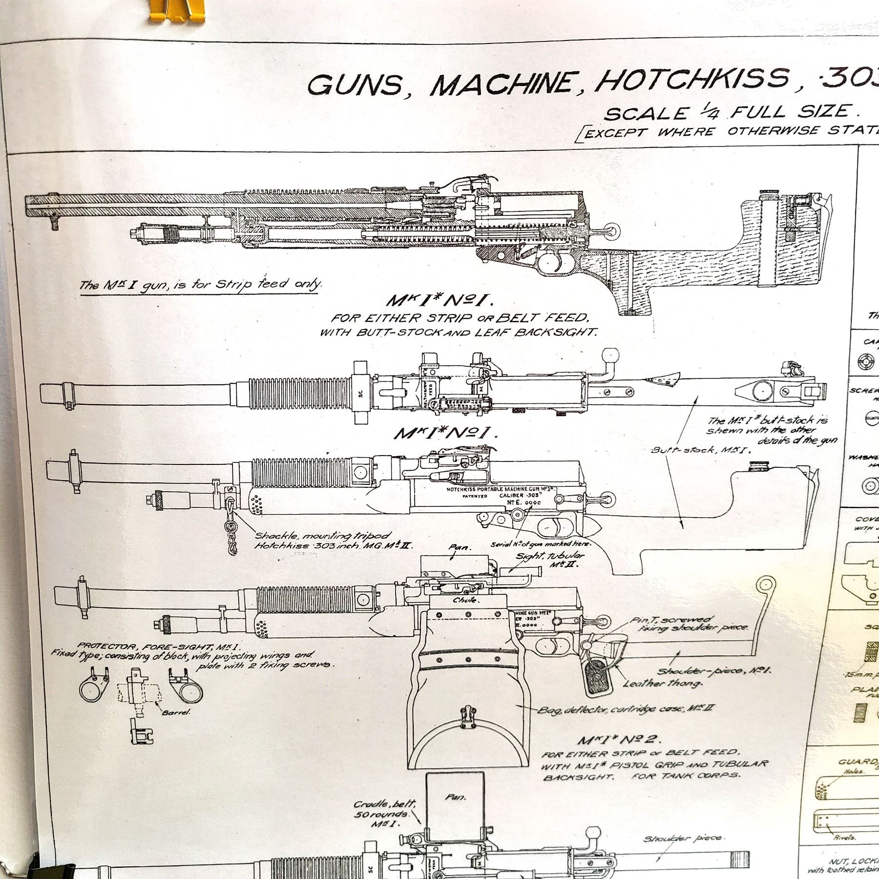 Lot 741 Hotchkiss Mk1 & 2 Machine Gun 303 British Blueprint Laminated - 1931 Armourers UK