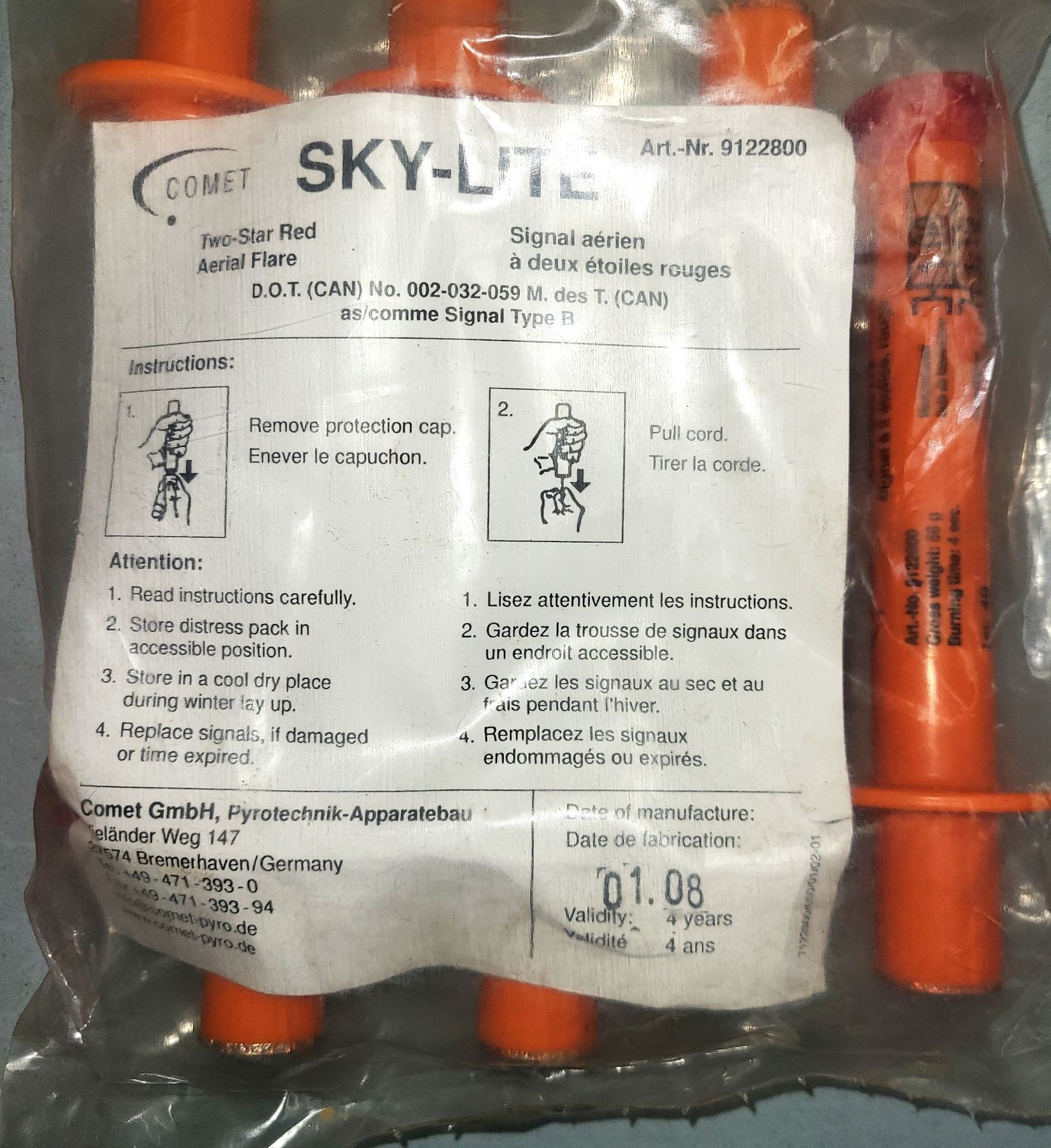 Rocket Flares - Comet Sky-Lite Signals 6 Flares in Sealed Bag