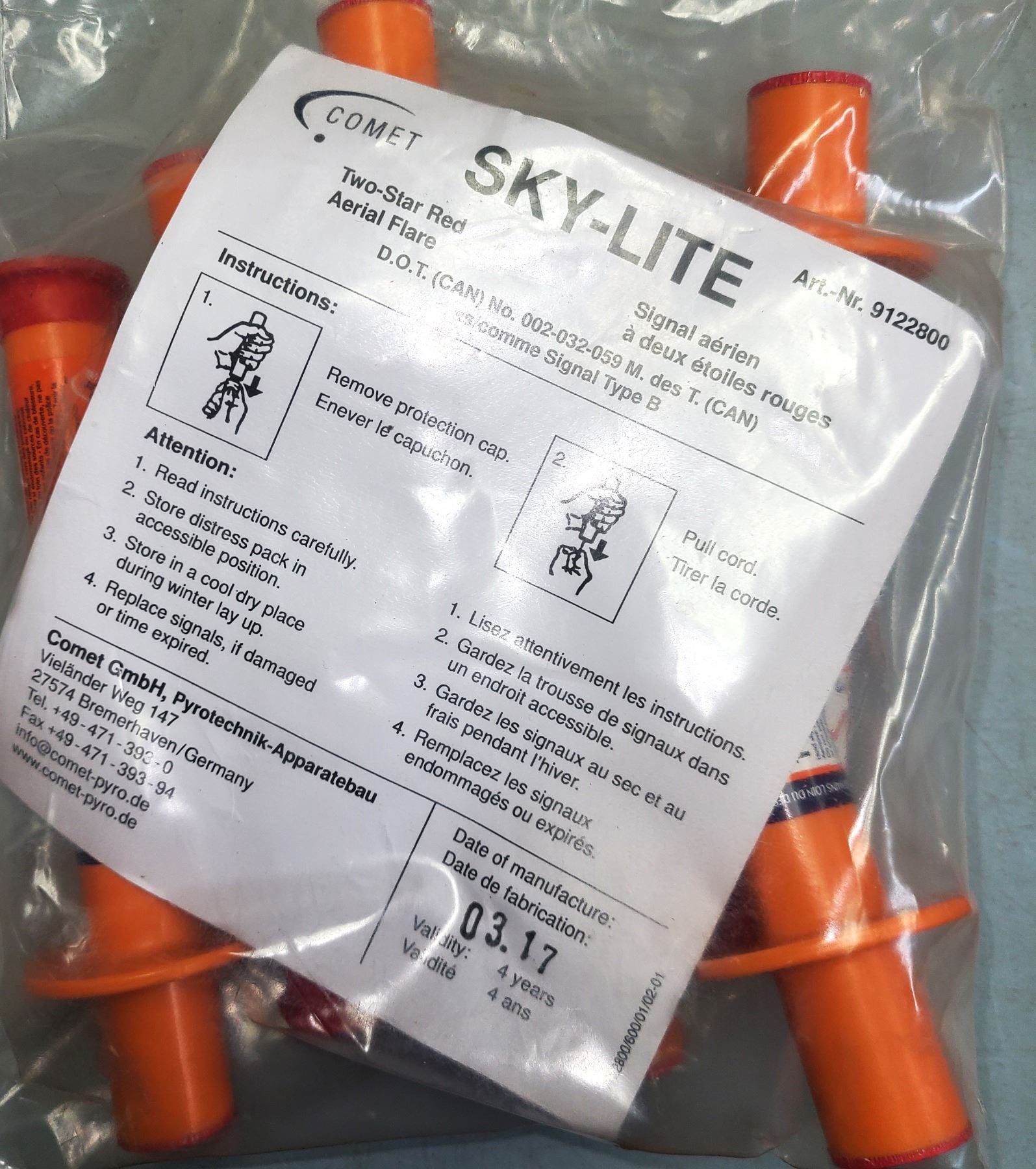 Rocket Flares - Comet Sky-Lite Signals 6 Flares in Sealed Bag