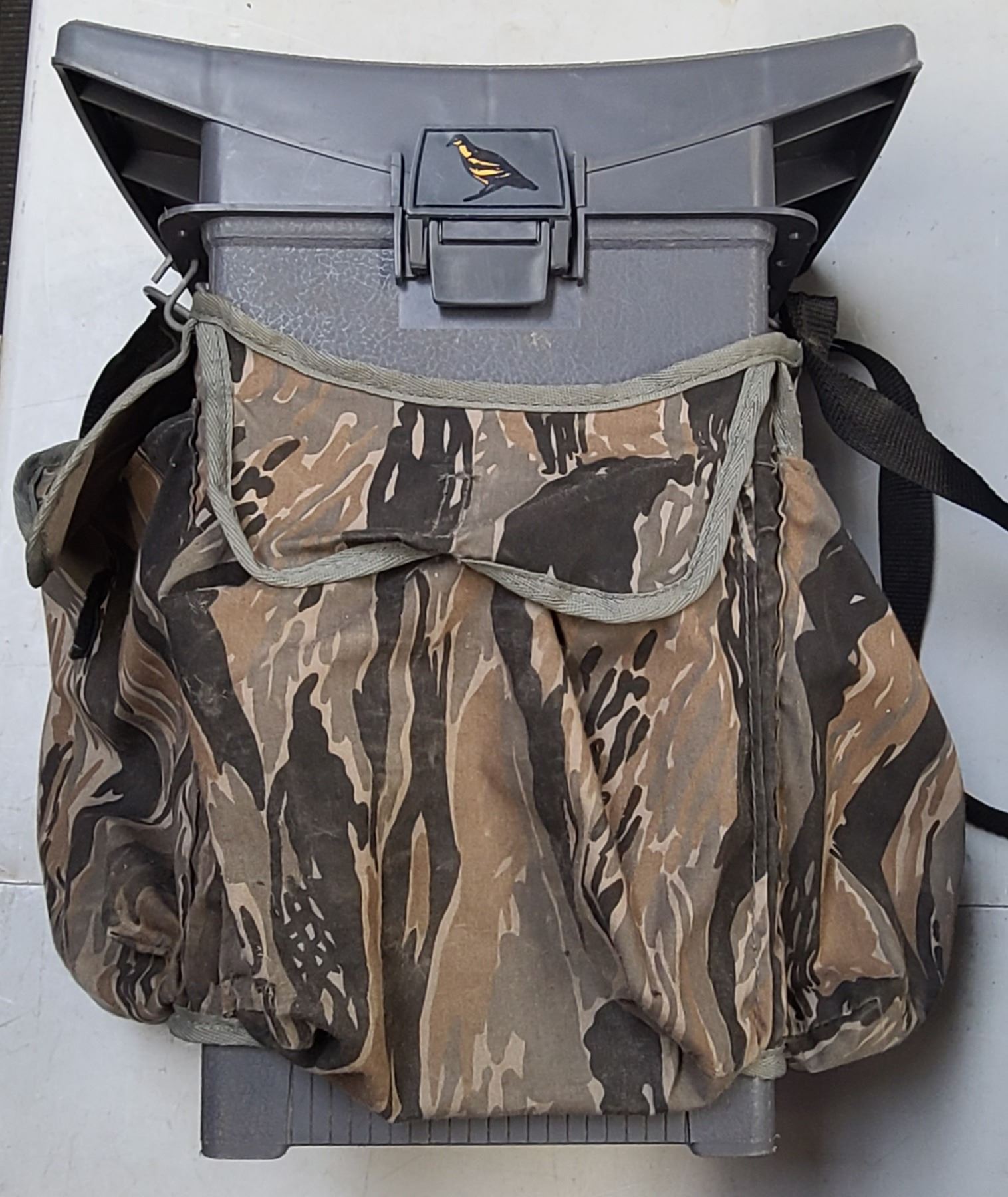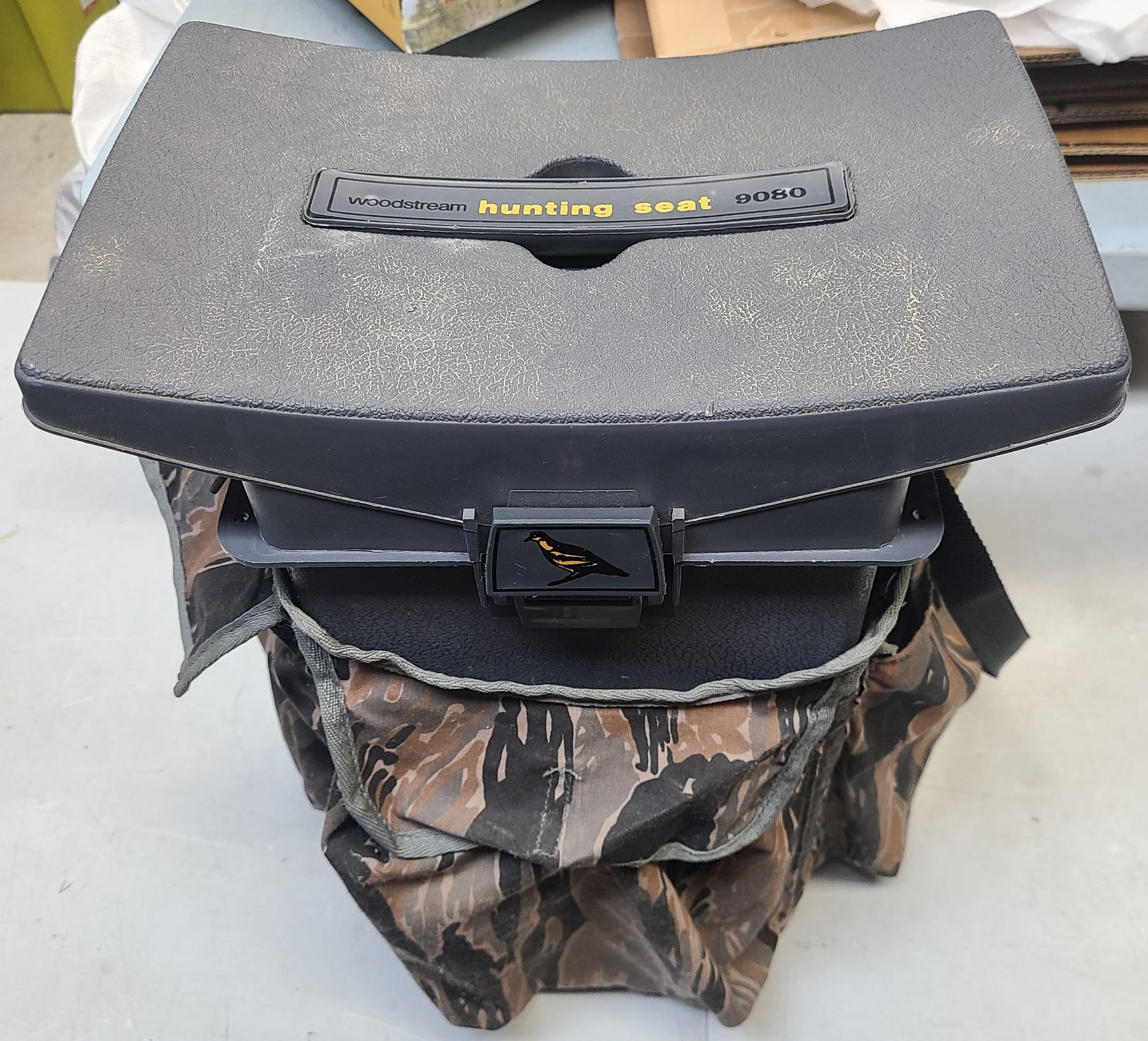 Lot 770 Woodstream Hunter Seat 9080 Green Camo Hunting Fishing Outdoor Chair Storage