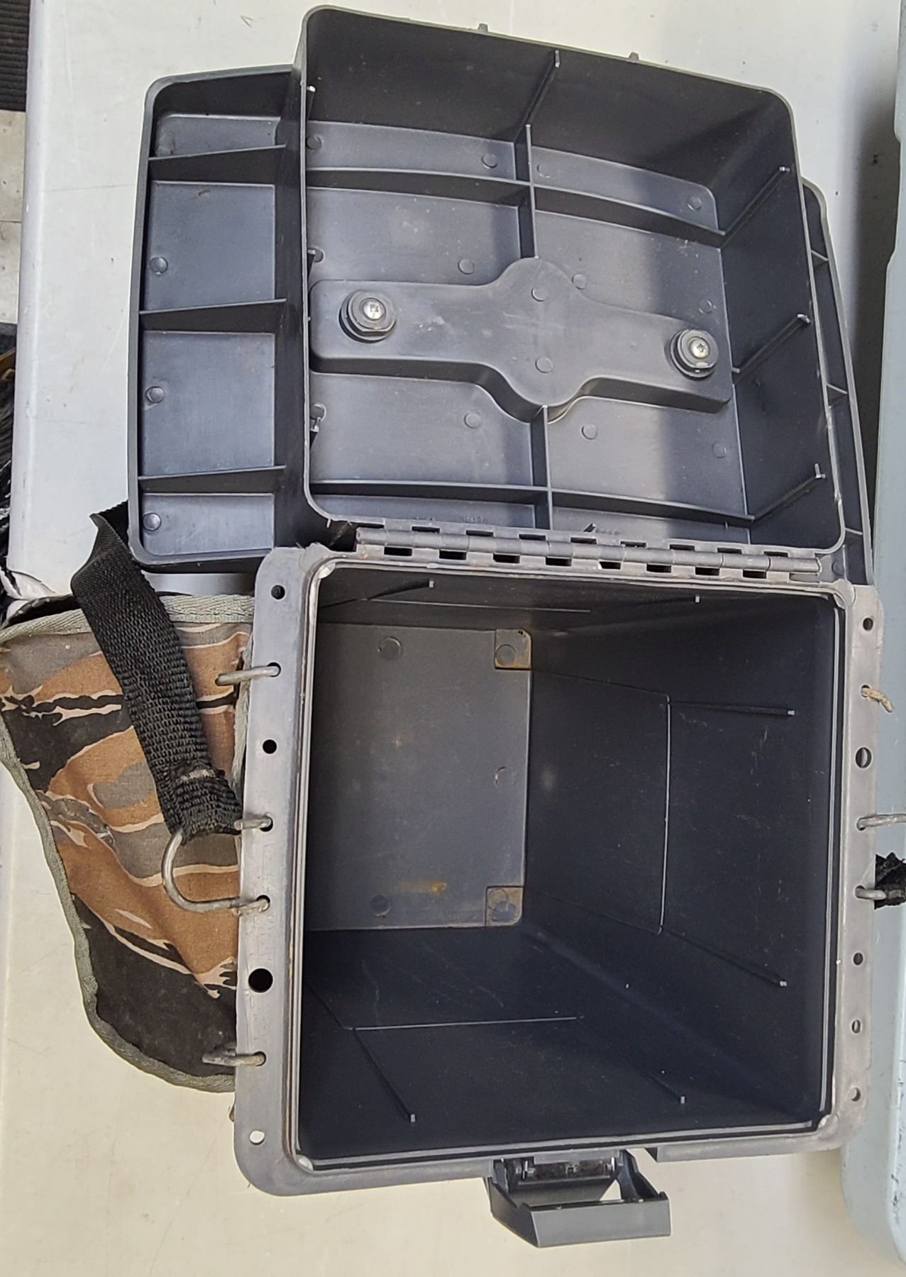 The Seat lifts up and there is a nice compartment for gear - Plus a camo color Pouches