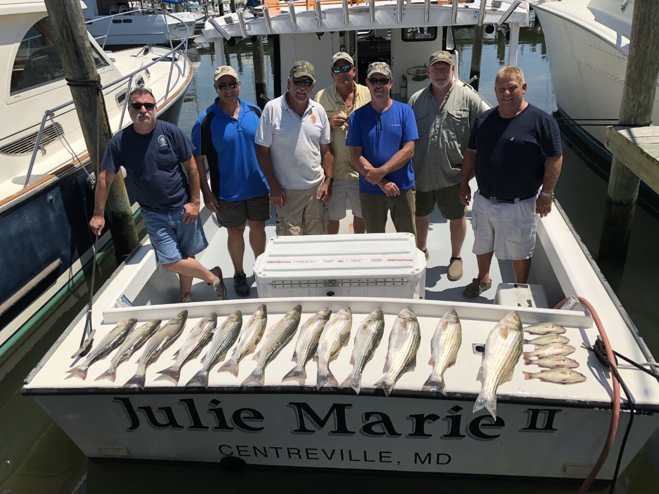 This donation is a full day fishing trip for up to six fishermen on the Julie Marie II on the beautiful Chesapeake Bay. The trip is available from May 15 - December 10, 2024 weekdays only. The Julie Marie II is a comfortable 40 x 12 Chesapeake Bay style boat, docked 10 minutes across the Bay Bridge. Experts and amateurs of all are welcome and although we cannot guarantee the weather you can definitely expect a great time. The primary target will be Striped Bass/Rockfish, and if conditions are right you will be fighting them on sporting tackle. Schedule your trip for open dates with Captain Charlie. The Chapter works with Captain Bryan in providing fishing trips for wounded veterans, so bid generously.