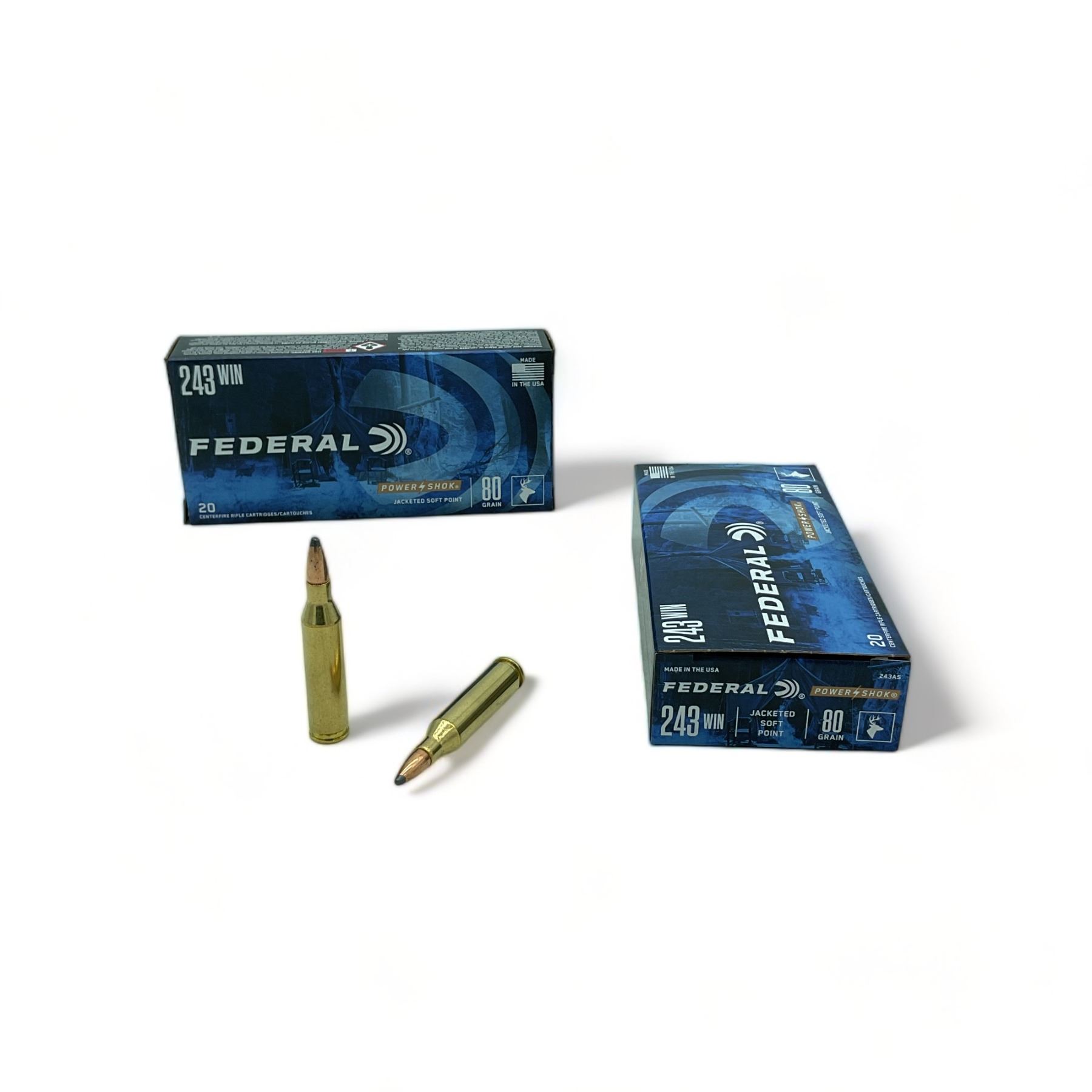Federal Power Shok 243 Win 80 Grain JSP Ammunition, 40 Rounds