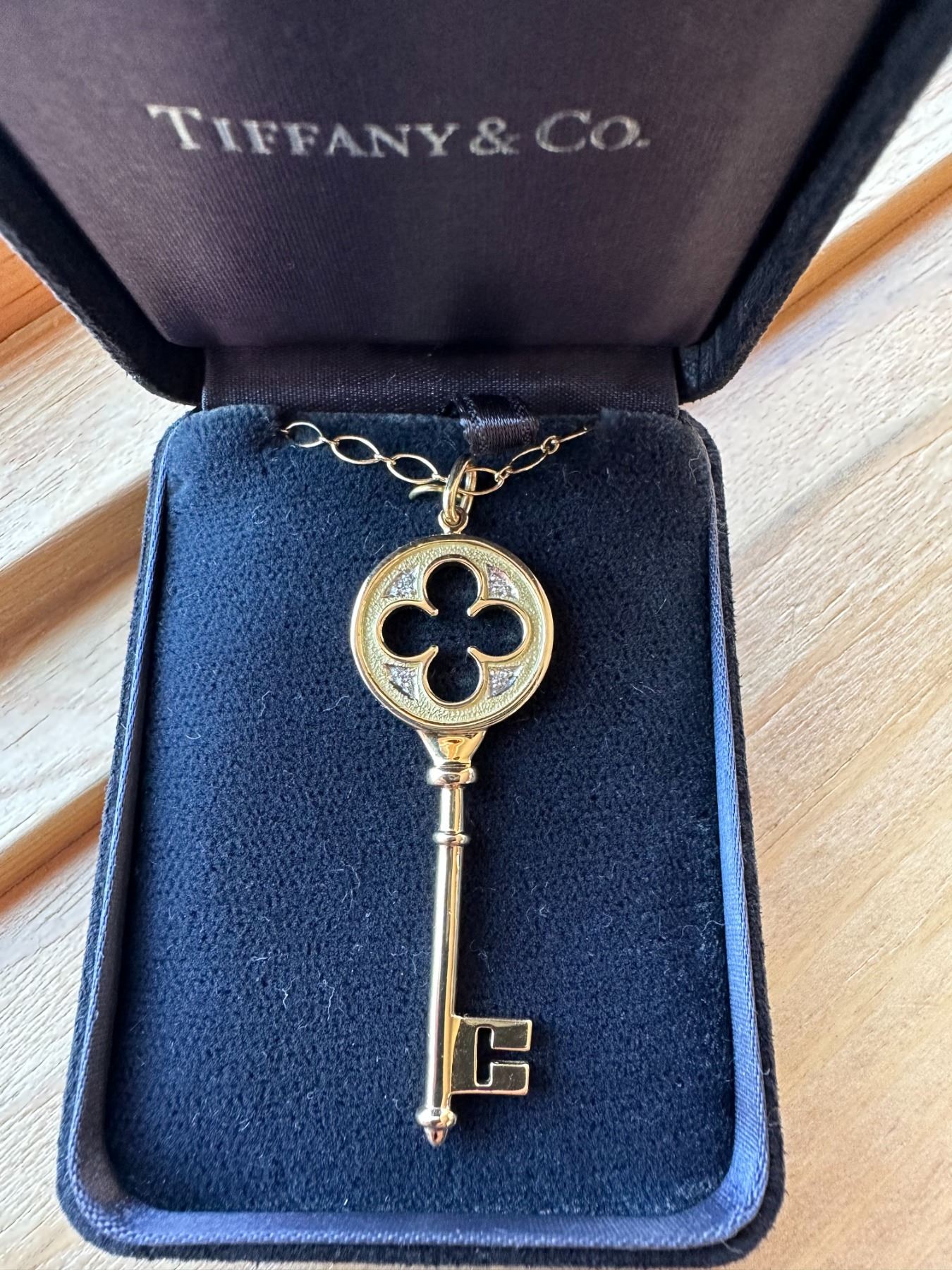 TIFFANY & CO. 18K GOLD & DIAMOND KEY PENDANT NECKLACE
