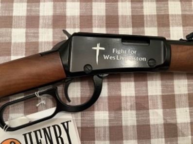 Lot 1 Custom engraved “fight for Wes Livingston” lever action .22