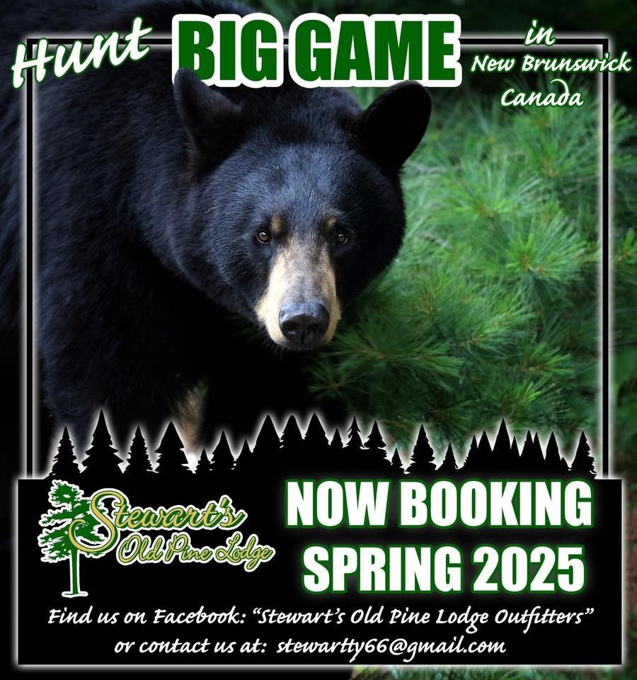 New Brunswick, Canada, 5-day Spring Black Bear hunt for one hunter in May/June 2025 or 2026. Hunting over well-established bait sites, you will see many black bear on each sit with a large variety to choose from. Exceptional home cooking in a comfortable and well appointed family run lodge makes for a very relaxing week of bear hunting. Second tag may be purchased for the opportunity to harvest two bears during the week. All lodging, meals, transportation during the hunt, along with trophy and meat preparation are included. Youth must be at least 16 years old to hunt in New Brunswick. Thank you to Stewart’s Old Pine Lodge for this 100% donation. Additional spots are available during your week in camp and can be filled for $2,500. Camp is limited to no more than 6 hunters per week.