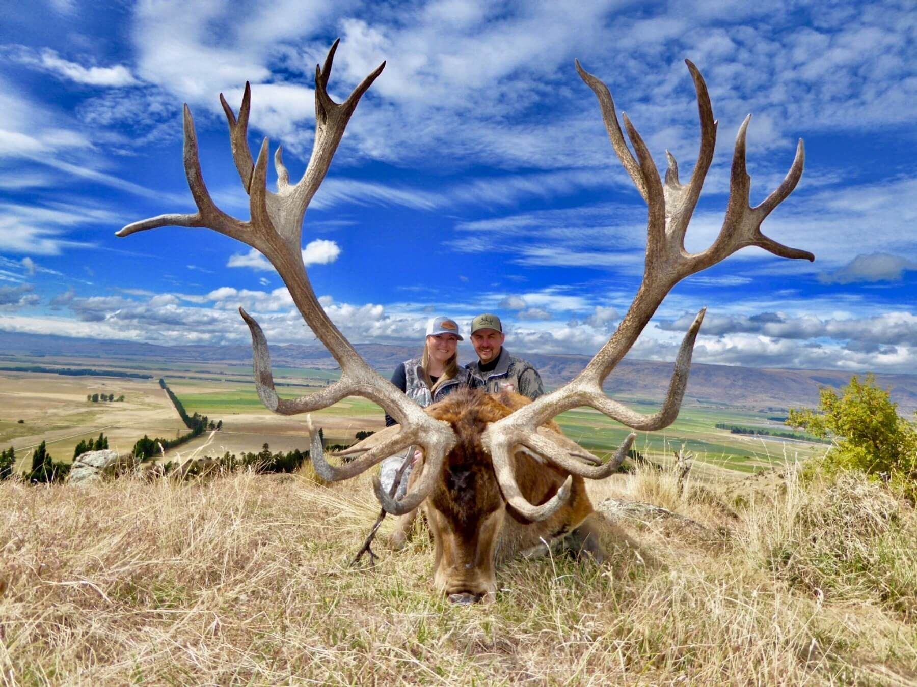 4-day 1x1 red stag rifle hunt for one hunter in the South Island of New Zealand - includes trophy fee for stag scoring up to 365 S.C.I. This hunt will be conducted on Track & Trail safaris private managed hunting concession. Hunt is available March through April 2025 and may upgraded to include fallow deer, Tahr and chamois at current price list. Additional hunters are welcome at $600/day; non-hunters are welcome at $300/day. This package includes field prep, transportation to local taxidermist, round-trip transportation between Christchurch, South Island Airport and the hunt concession, home style accommodations and meals. Not included are dip & pack service.