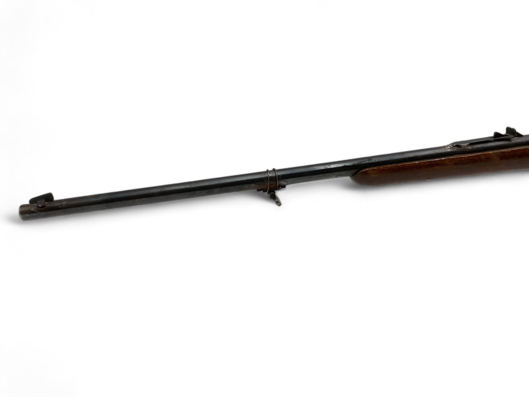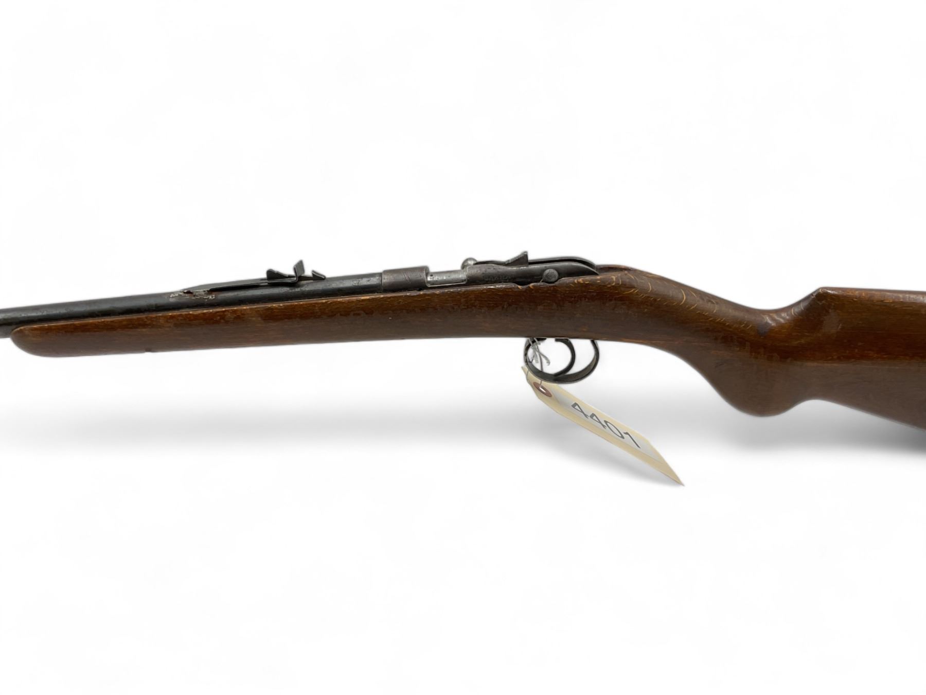 Husqvarna Single Shot Bolt Action Rifle 22LR 24" Barrel Wood Stock. Fixed front sight, adjustable rear sight has been welded . Front sling mount has been wired and soldered. Missing rear sling mount. This is a non-restricted firearm.