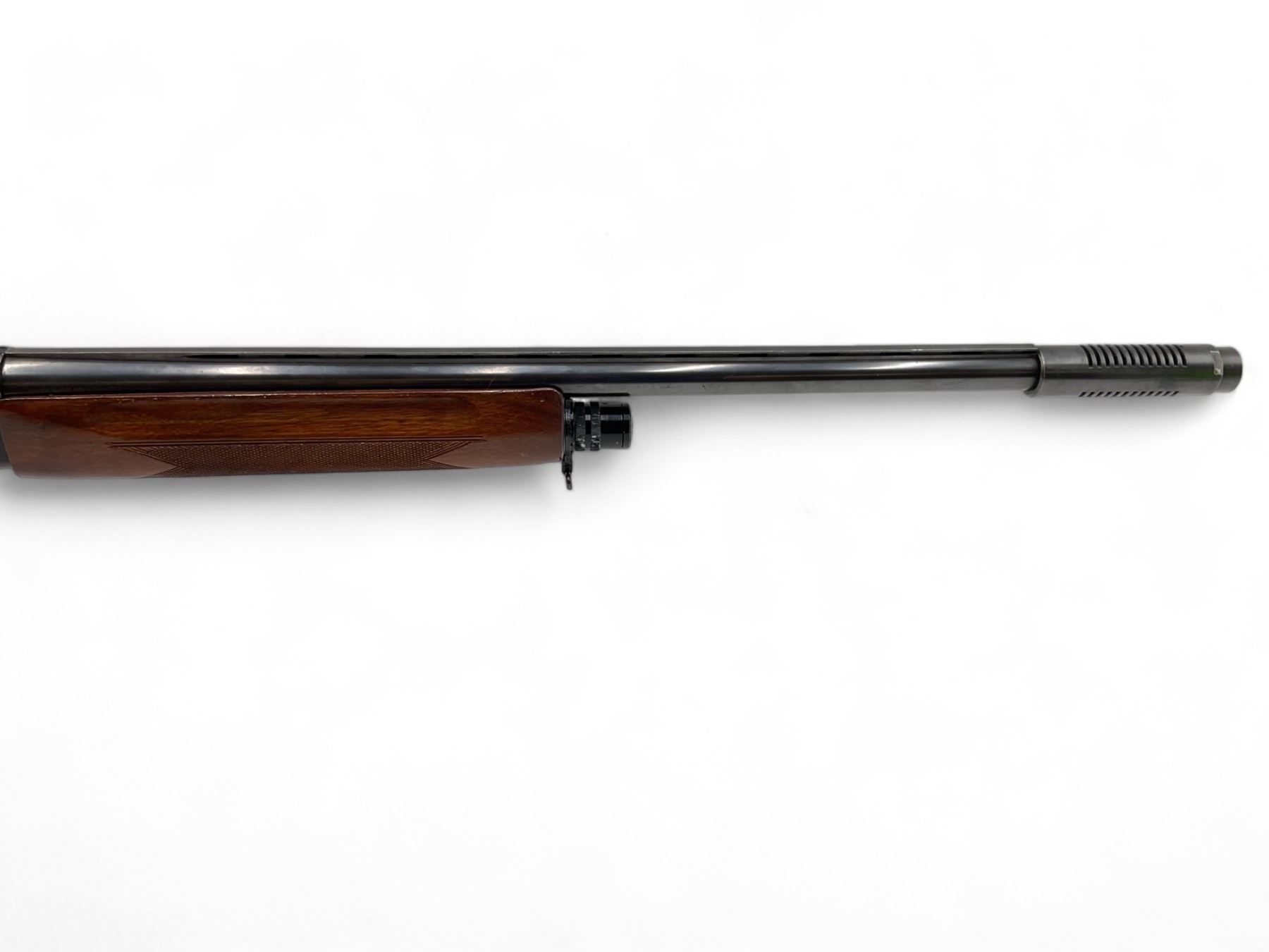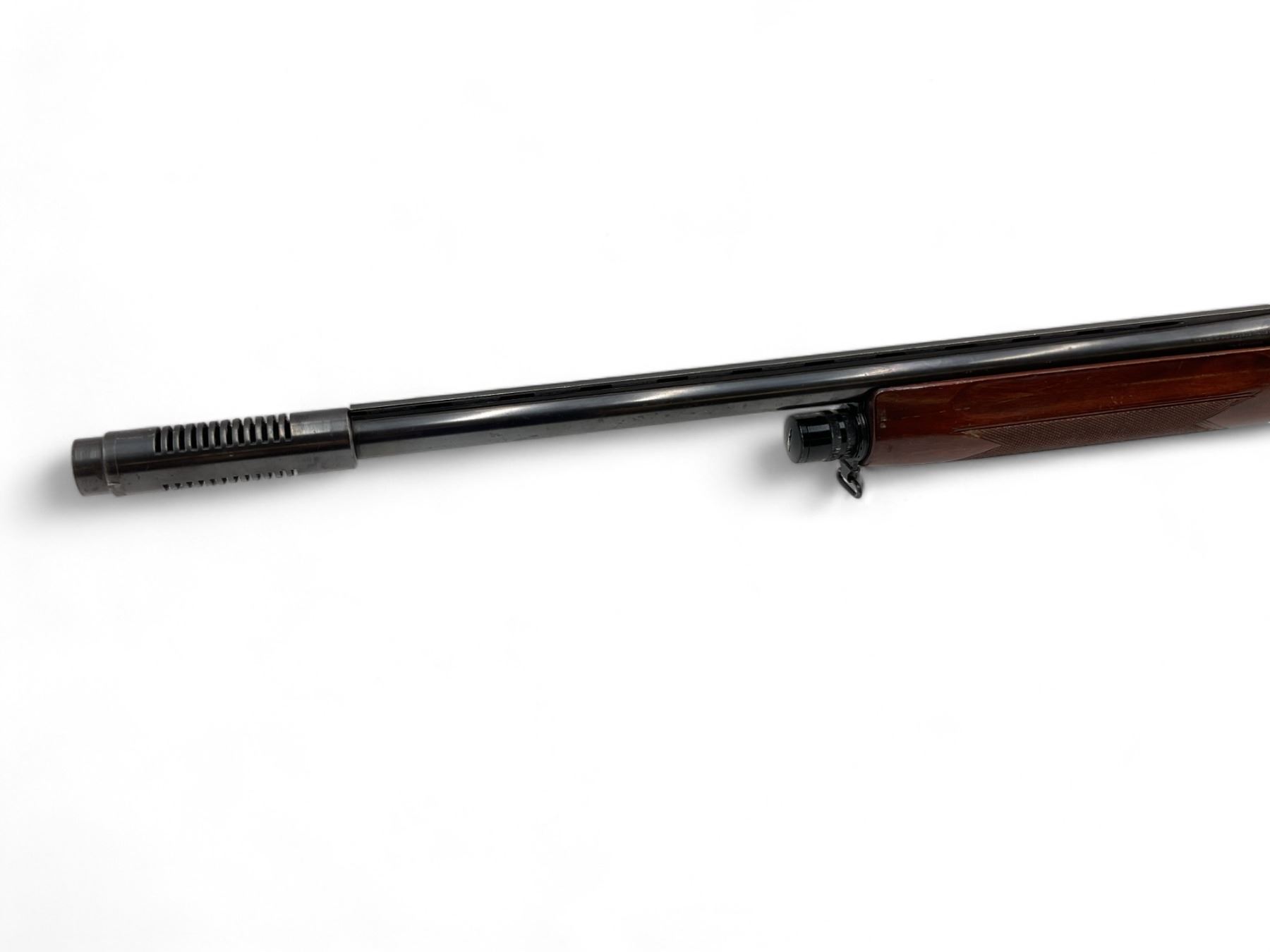 Husqvarna Semi Auto 12Ga Shotgun 22" Vent Rib Barrel Wood Stock. Includes compensator on barrel. Tube magazine, custom charging handle. Rear stock has small crack near receiver. This is a non-restricted firearm.