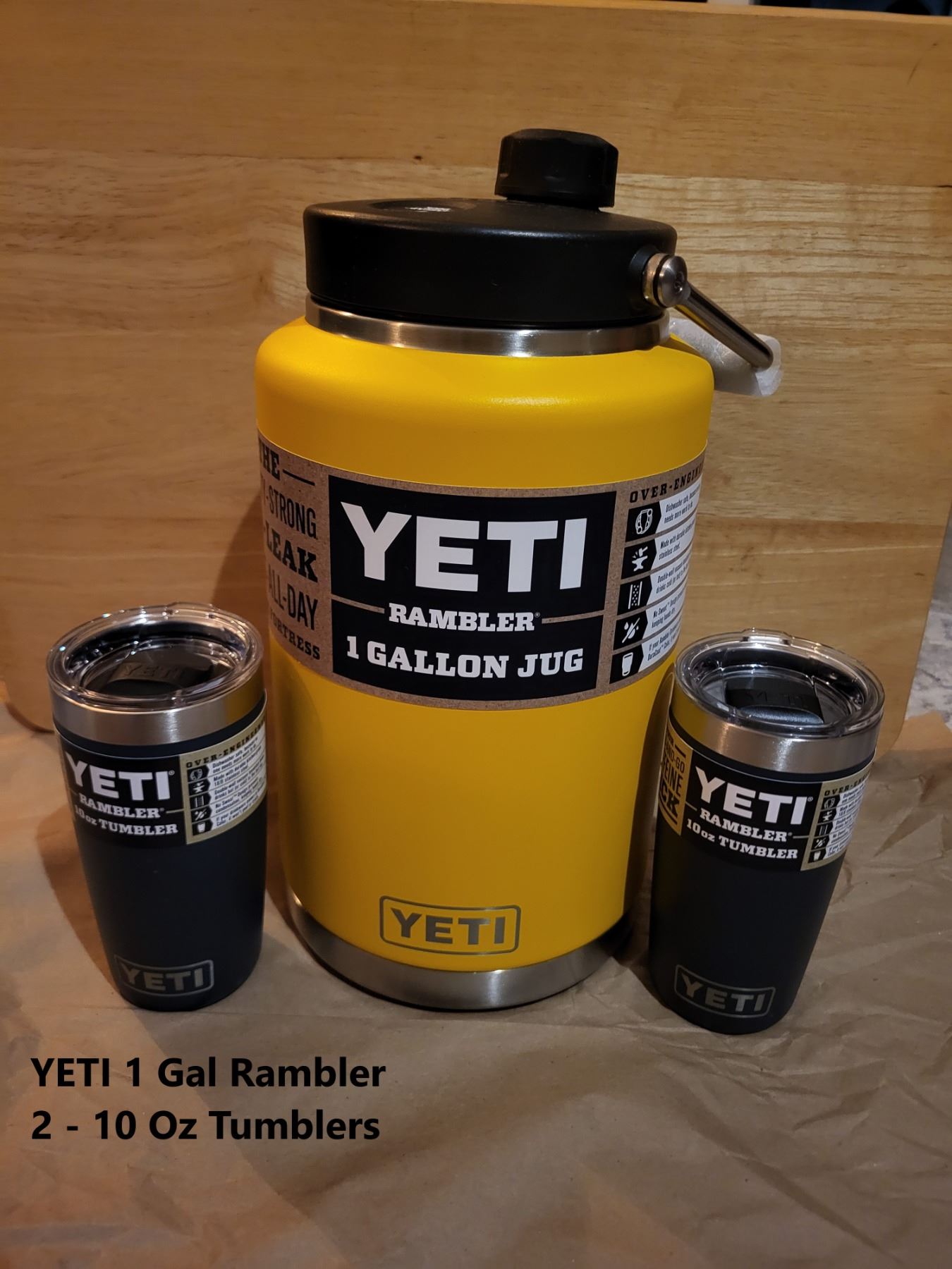 Lot 21 Yeti Rambler 1-Gallon Jug and 2-Rambler 10 oz Tumblers w/ MS Lids