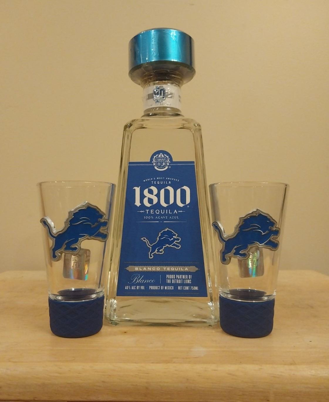 Lot 25 Detroit Lions 1800 Tequila Package w/ (2) Tequila Glasses