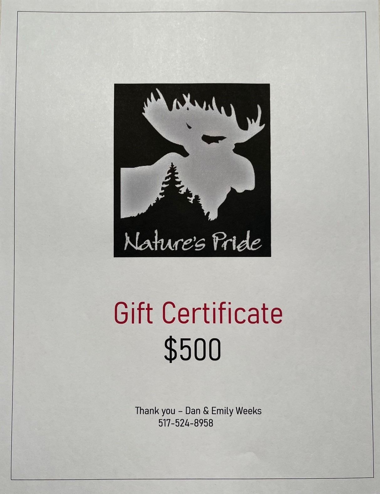 $500 Gift Certificate for Nature's Pride Taxidermy - Concord, MI