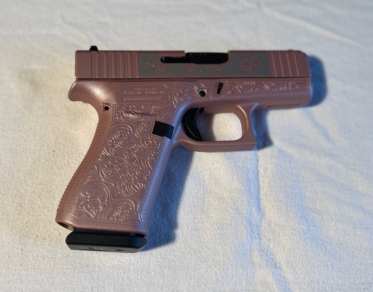 Glock Model 43X 9mm Pistol w/ "Glock & Roses" Finish (Winner must be at least 21 YOA)