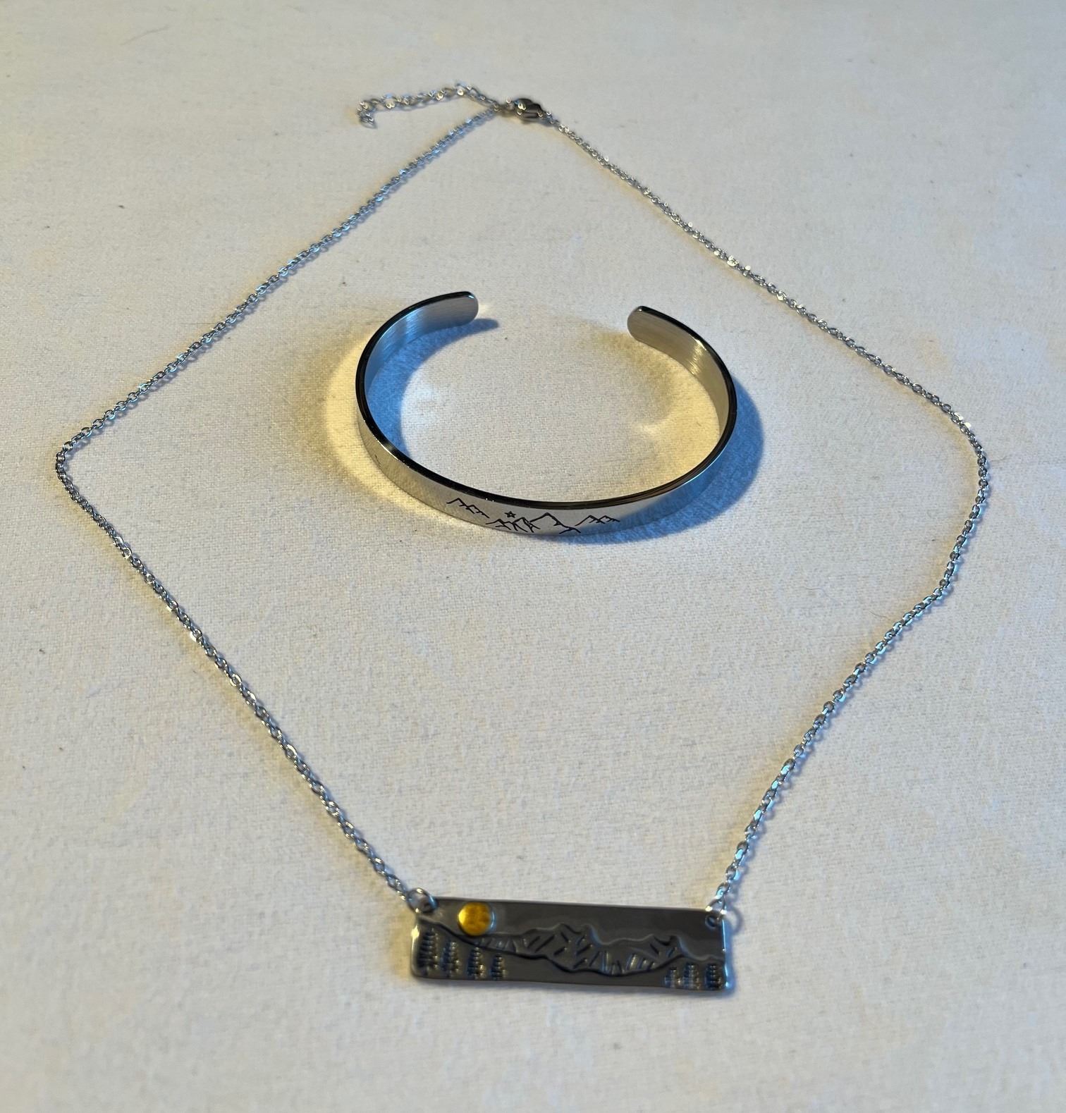 "Evergreen Forest" Bar Necklace & "North Mountain" Cuff Bracelet