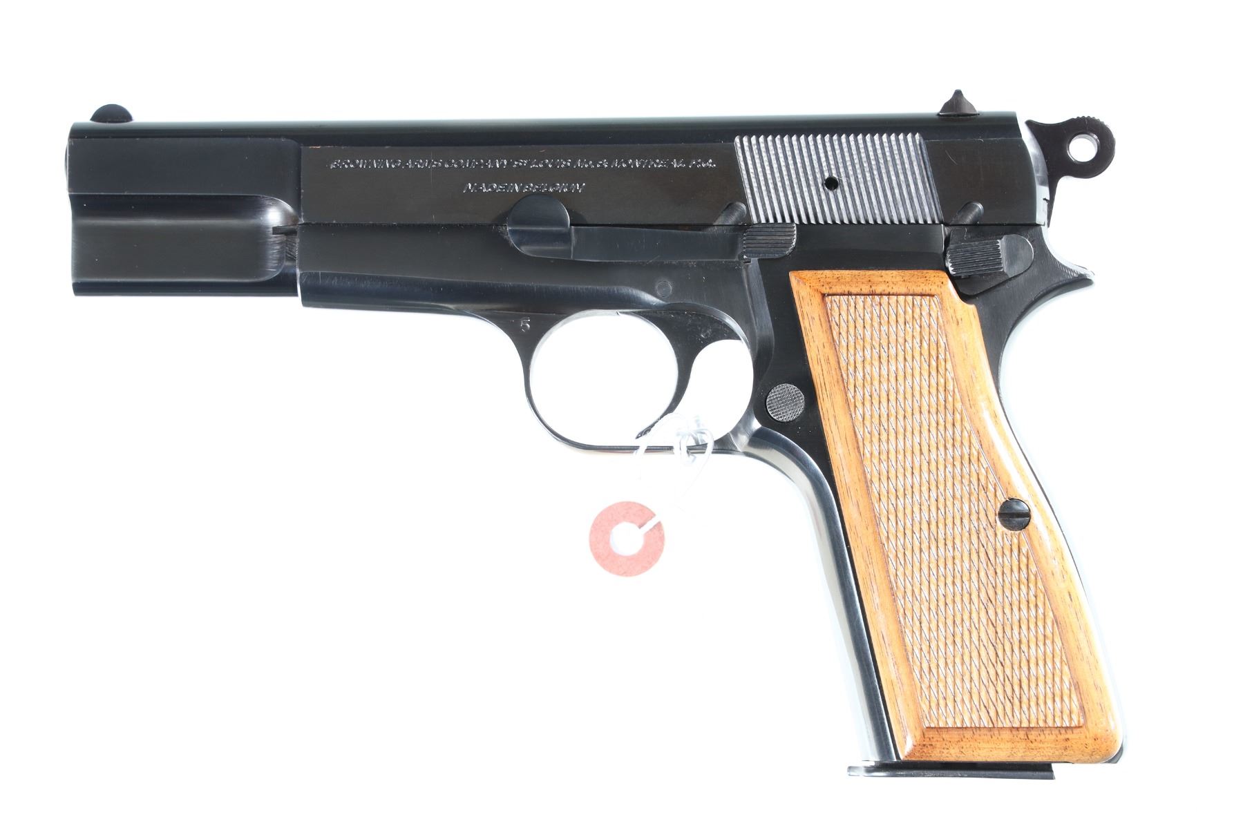 9mm Serial # T201196 T-Series. Mfg in Belgium, 1967. With red back grips. Excellent overall condition. Barrel 4 3/4" C&R