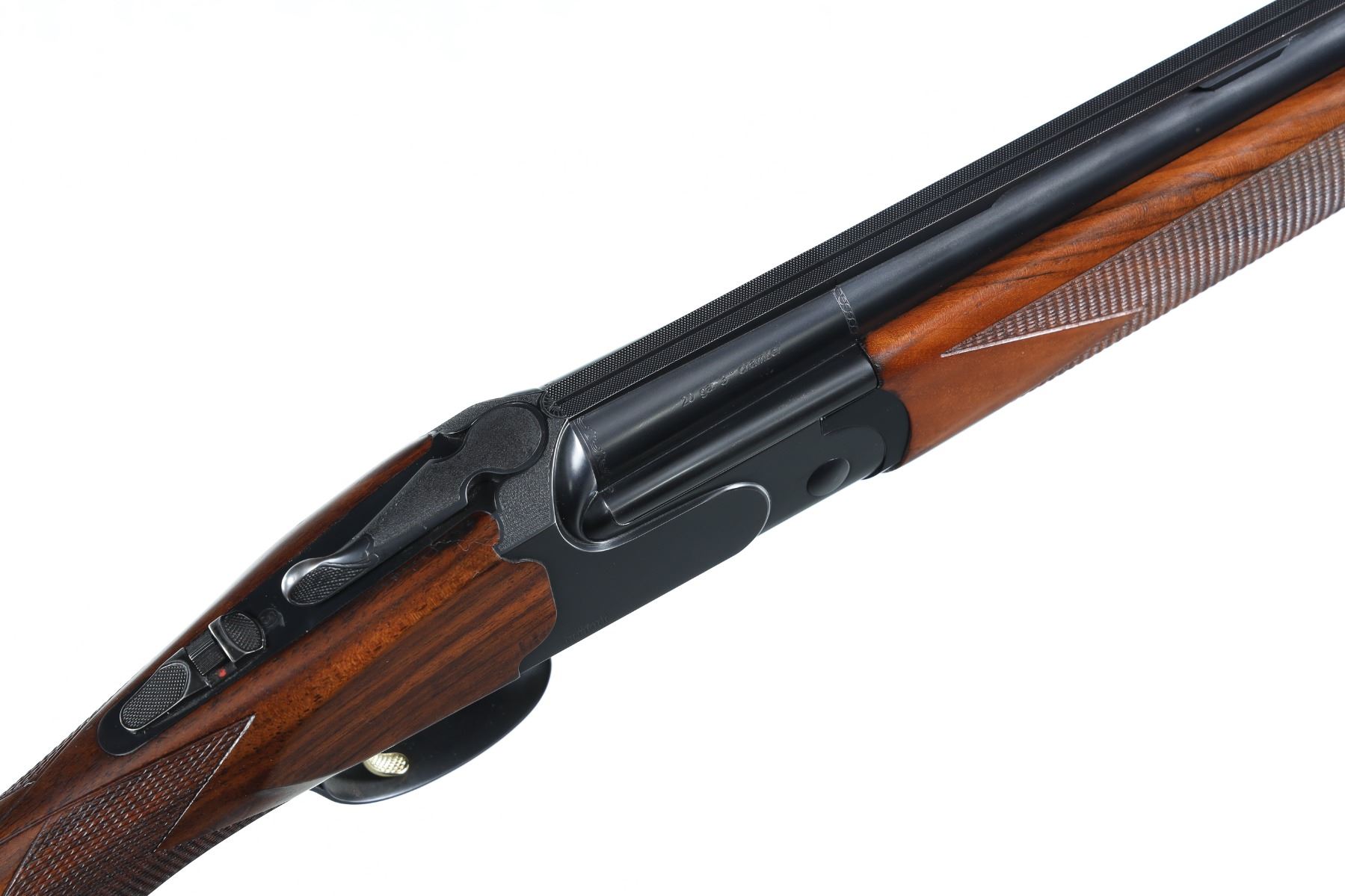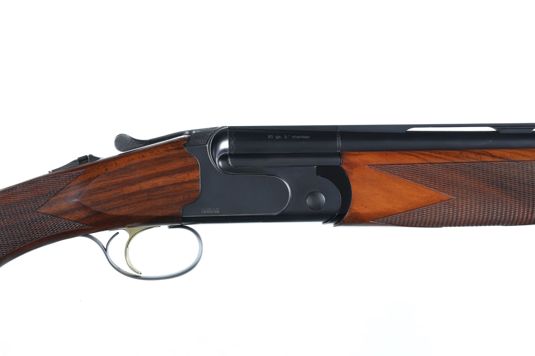 20ga Serial # 102807 3" chambers, interchangeable choke tubes, LOP 14 5/8", DAC 1 5/8", DAH 2 1/4". Blue finished barrels with wide sporting vent rib, single selective trigger with ejectors and automatic safety. Gun is housed in original factory carry case with additional choke tubes. Extremely fine condition with light bruises in stocks, receiver and barrels retain 98% original blue, mechanically excellent. Mfg in 2003. Barrel 32" Modern