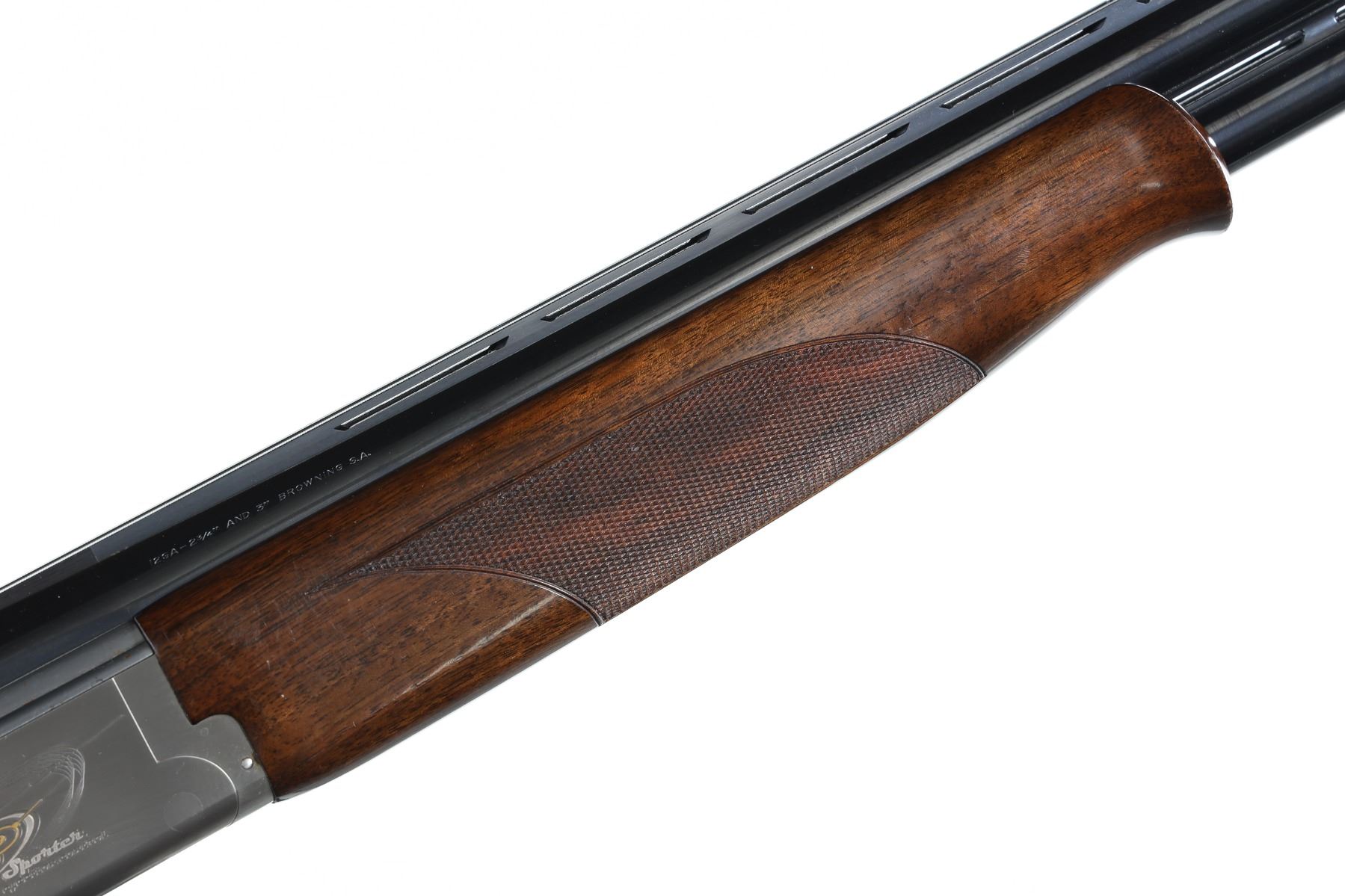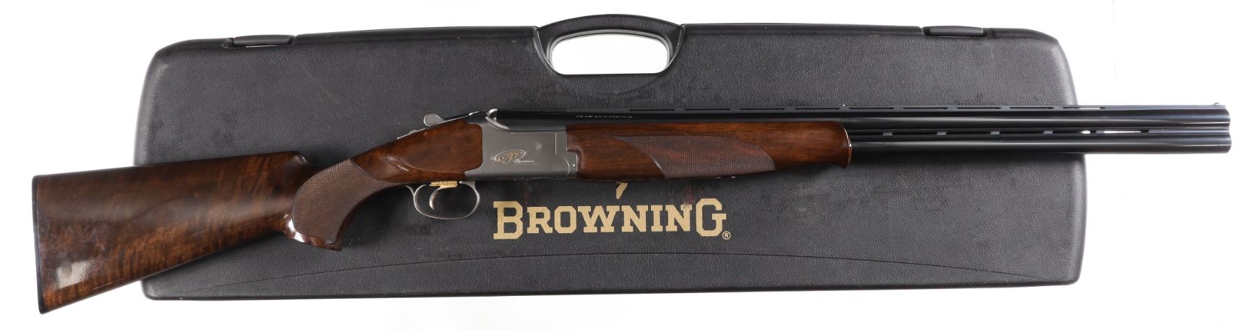 12ga Serial # 46788MT Invector choke tube system, single selective trigger with ejectors. Checkered pistol grip stock, LOP 15", DAC 1 1/2", DAH 2 1/4". Gun is housed in Browning travel case with complement choke tubes and wrench. Very fine overall condition retaining most original finish with stocks having minor impressions and bruises. Case is very fine. Mfg in 2006 Barrel 28" Modern