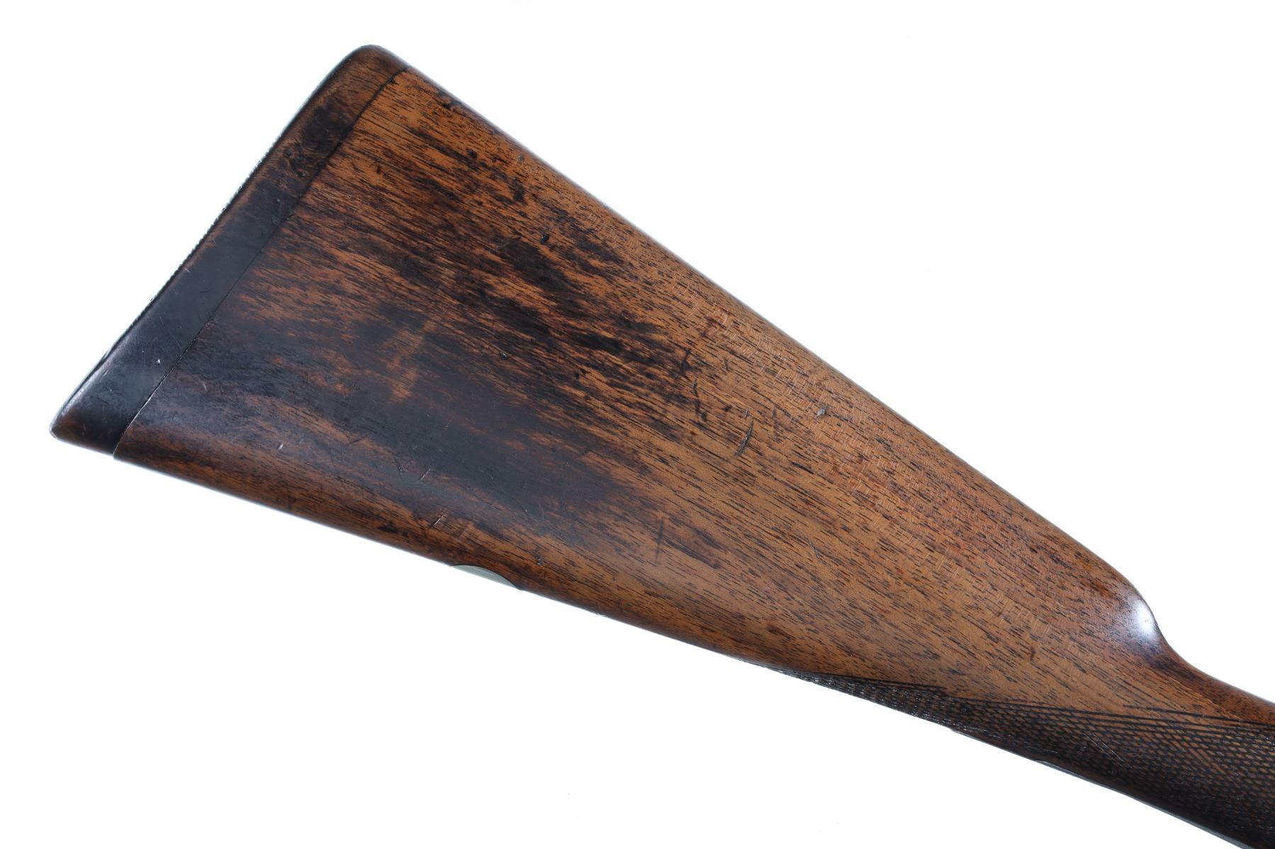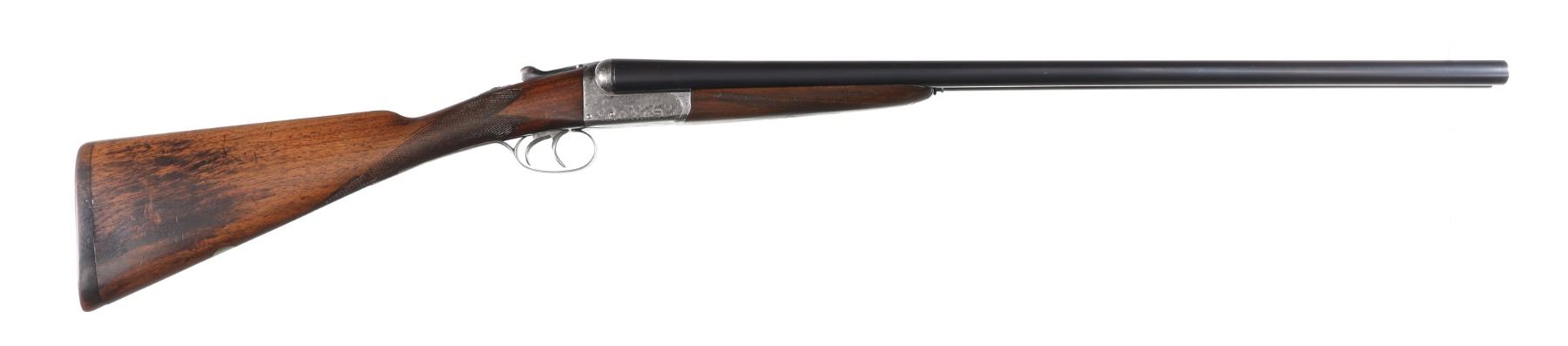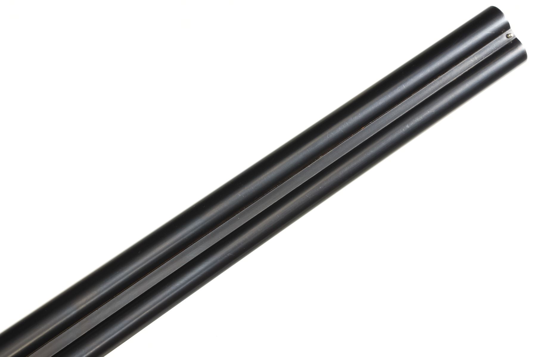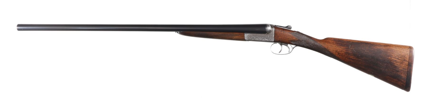 12ga Serial # 128858 Webley & Scott Model 700 Box lock double 12 ga, with double triggers with ejectors. 28" Bbl, choked with full and imp, cylinder chokes. 15" LOP with 1 3/8" & 2-3/8" drop. Condition, Very fine with receiver having toned to silver with scroll engraving . Barrels marked Webley & Scott. English refinished and retaining most all barrel blue. Mechanically excellent. C&R. Mfg in 1958 Barrel 28 C&R