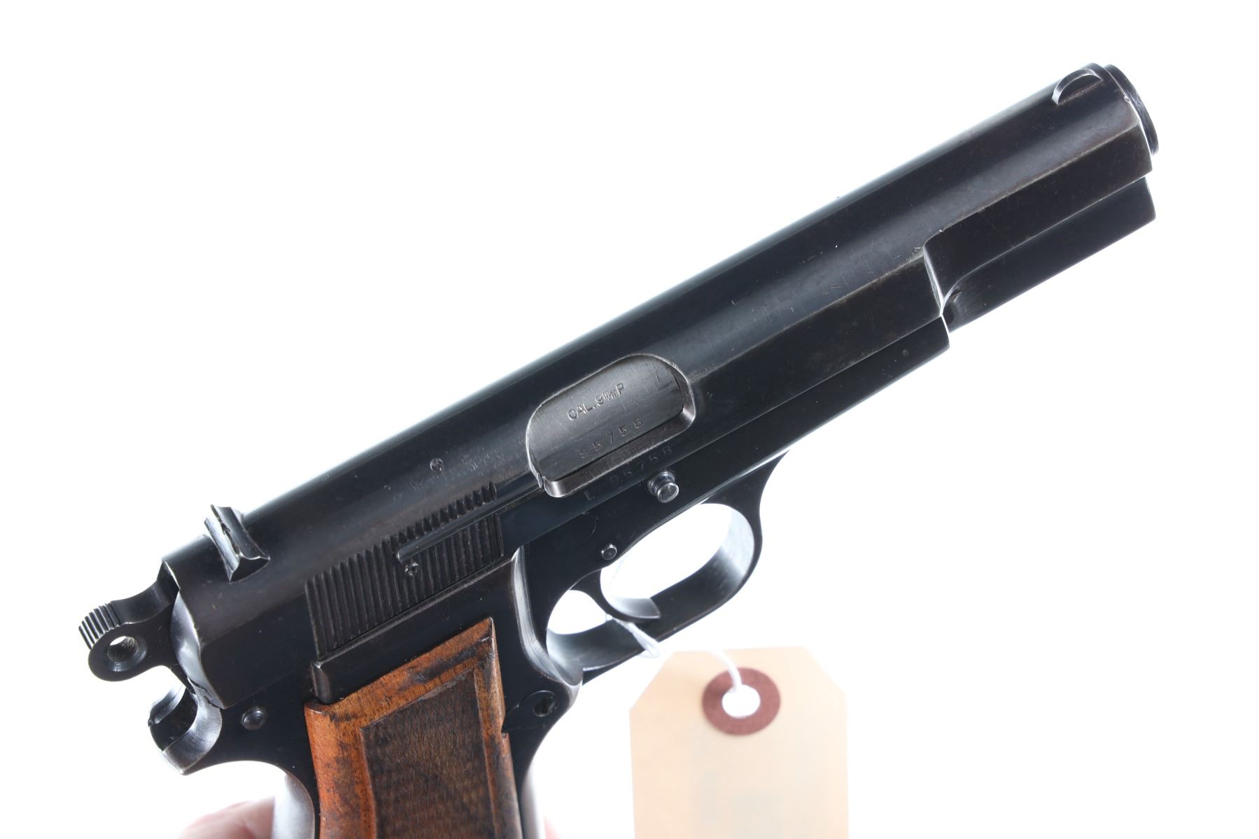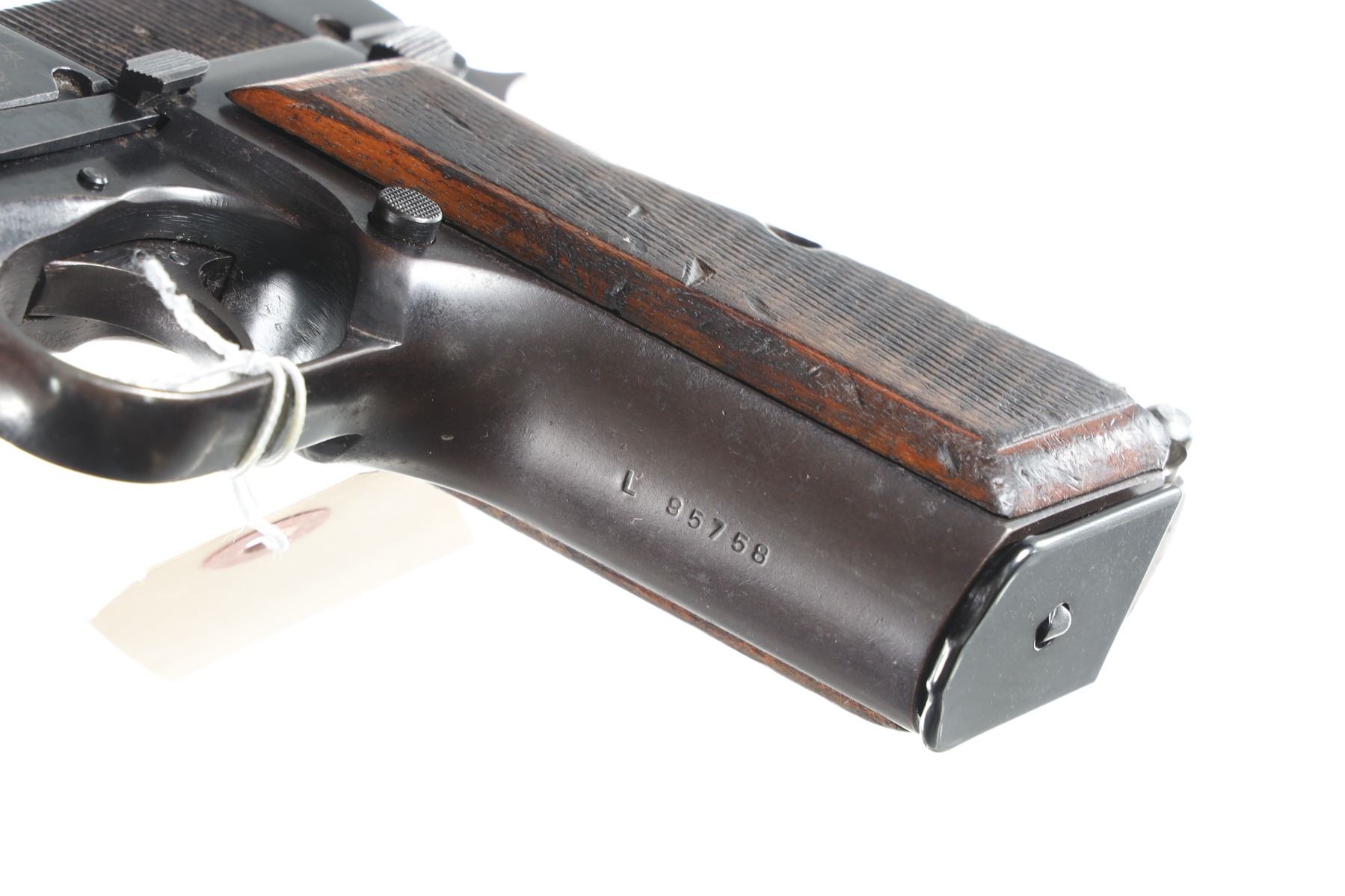 9mm Luger Serial # L95758 Good overall with mottled blue brown finish and worn grips, commercial Mecgar magazine and small Sarco import marked, mechanically excellent. Barrel 4 3/4" Modern